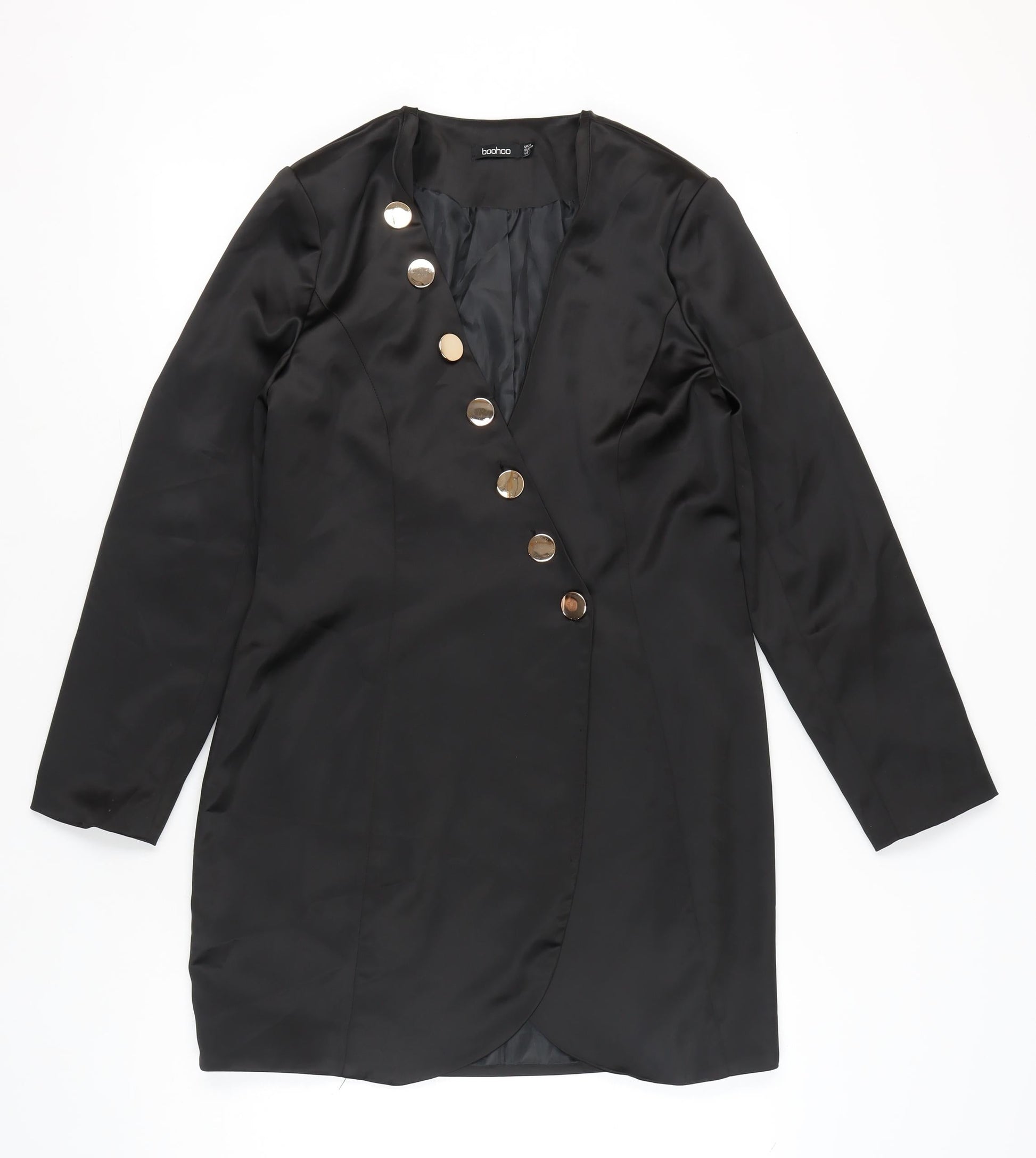 Boohoo Women Black Size 14 Shift Mini Dress Long Sleeve V-Neck