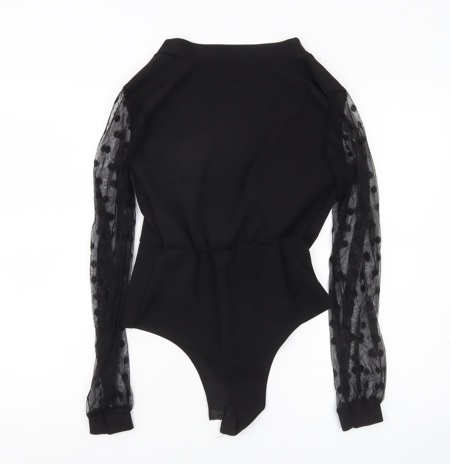 Boohoo Women Black Size 8 Sheer Sleeve Polka Dot Bodysuit