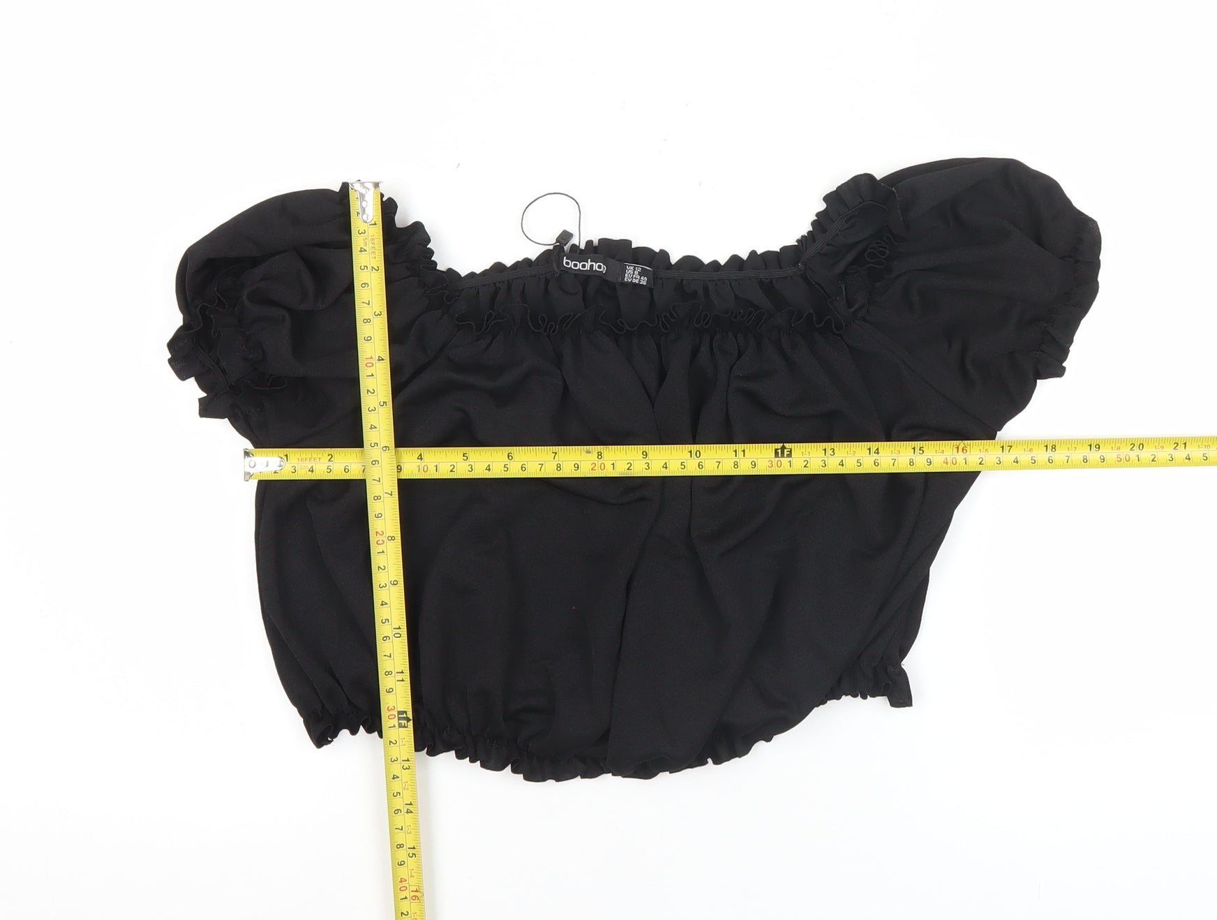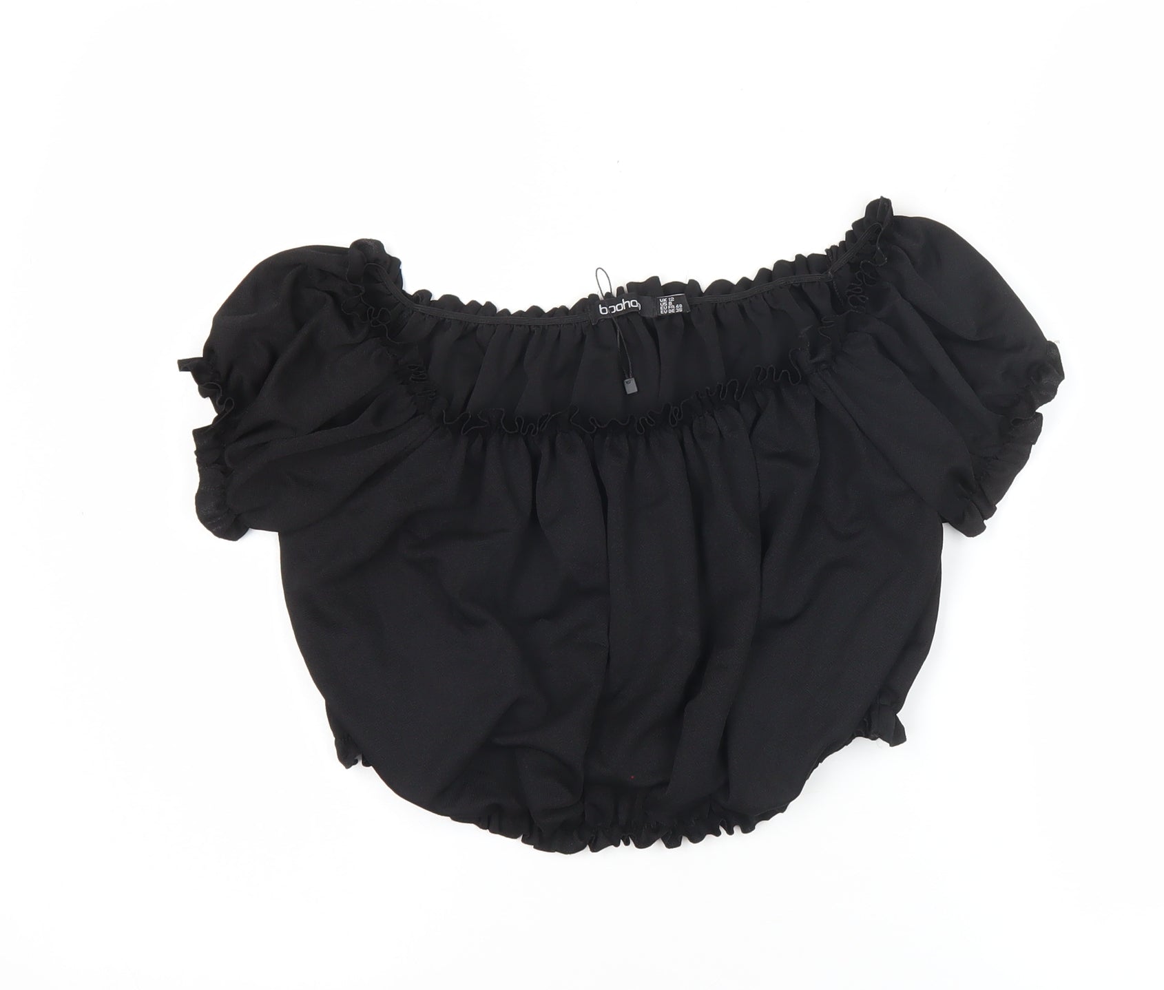 Boohoo Women Black UK 12 Cropped Off Shoulder Puff Sleeve Blouse