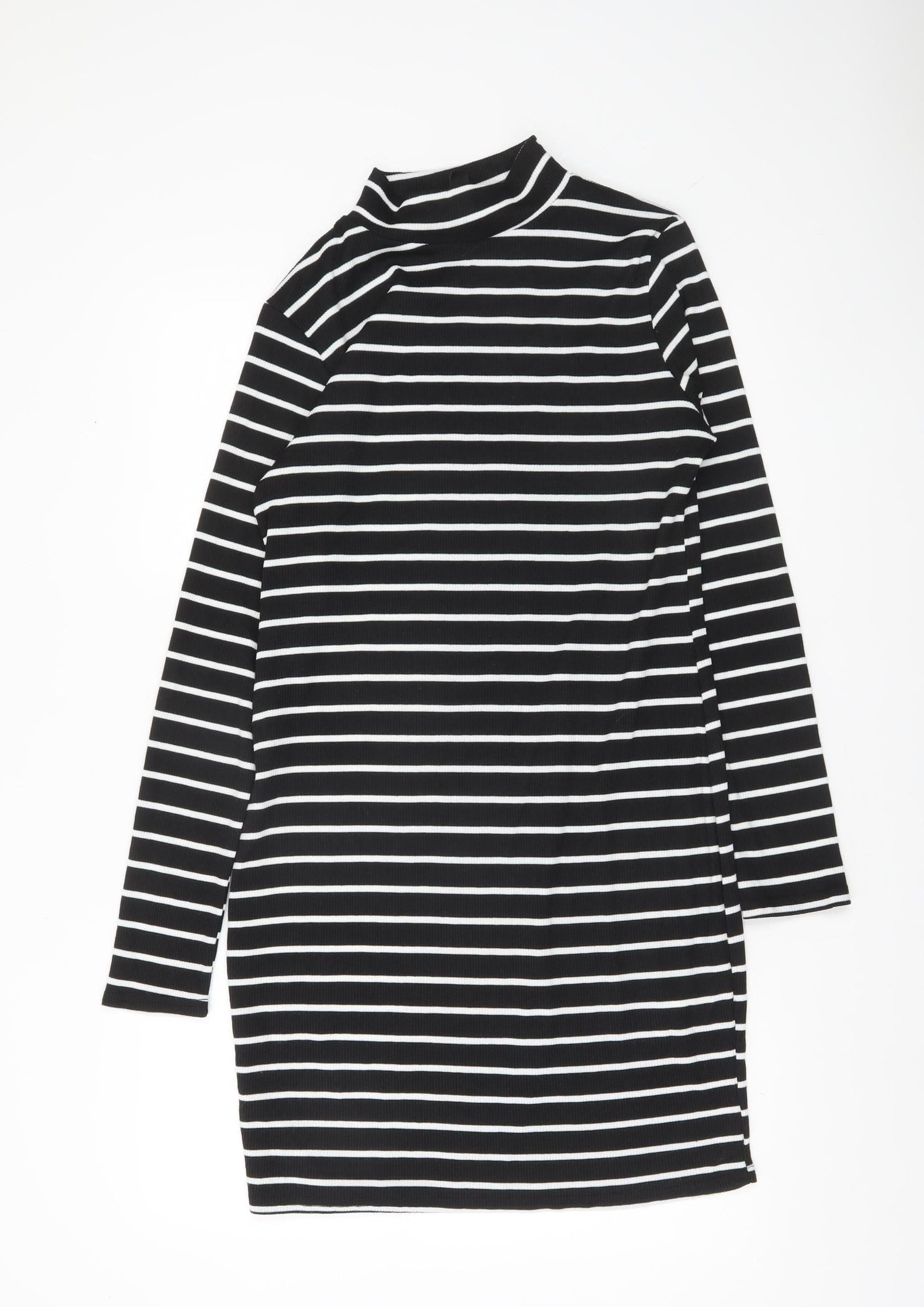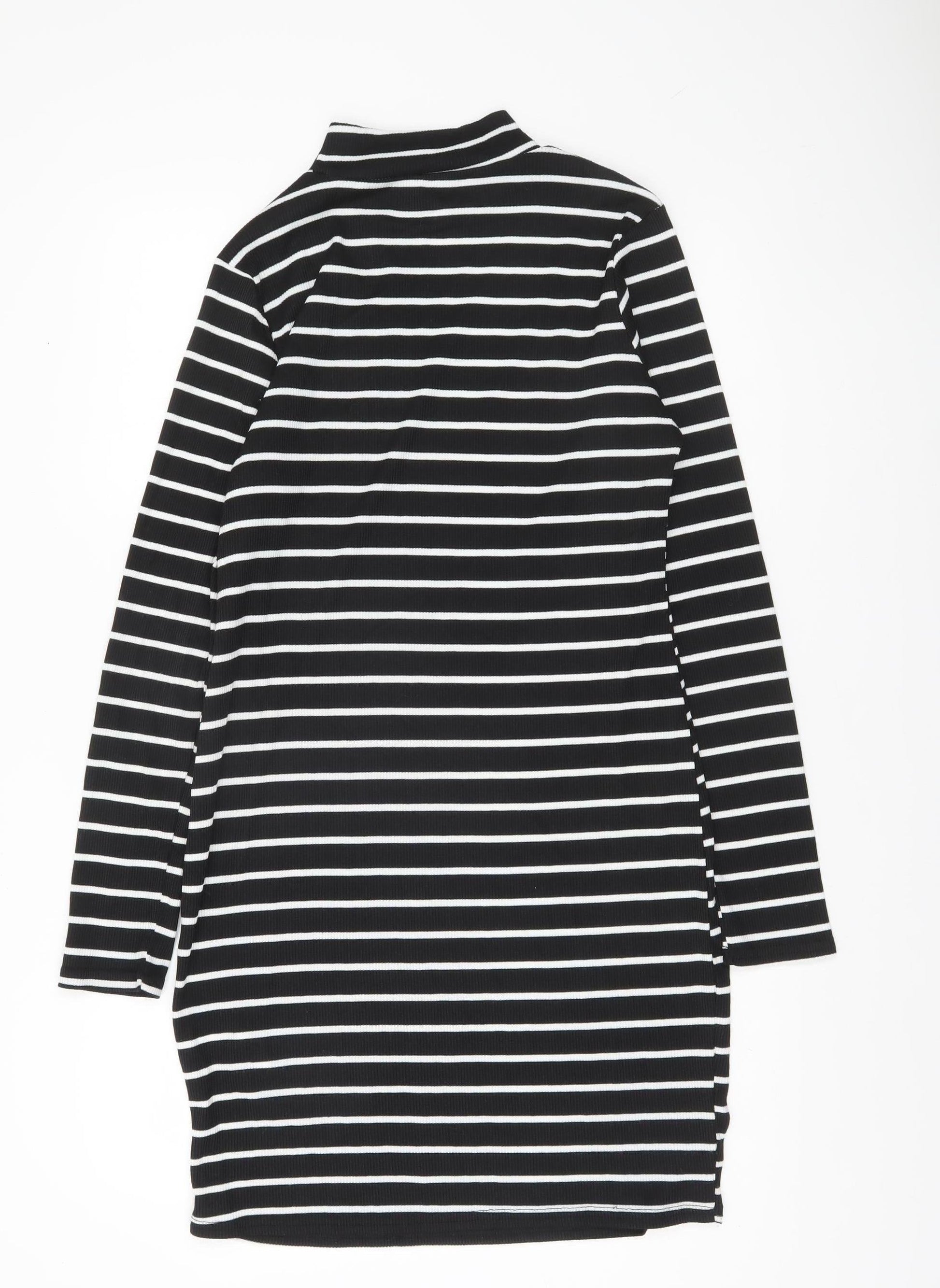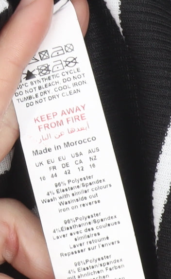 Boohoo Women Black White Striped Bodycon Dress Size 16 Long Sleeve