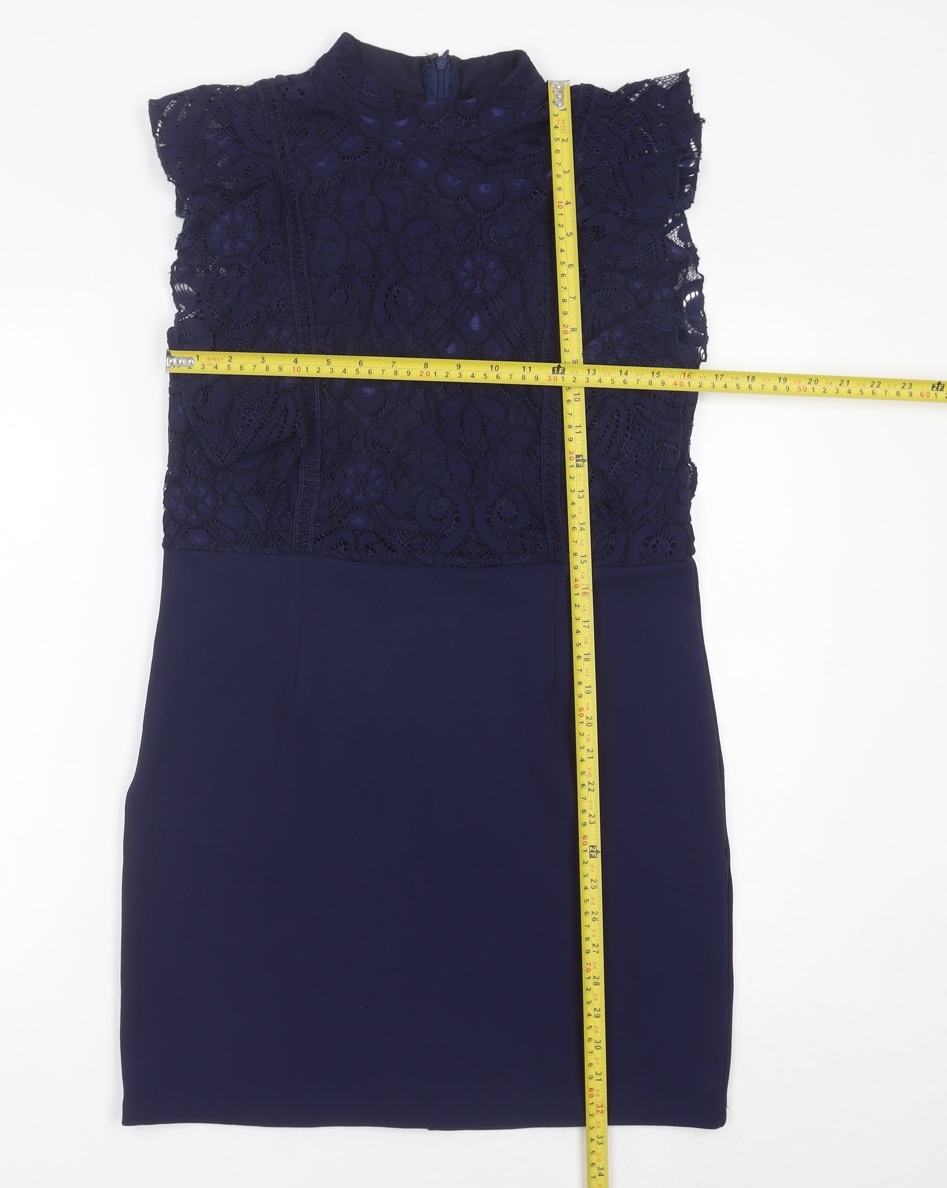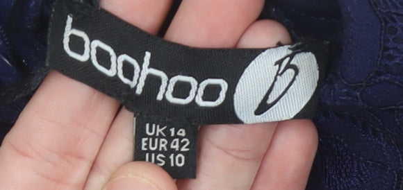 Boohoo Women Blue Lace Sheath Dress Size 14 Formal Party