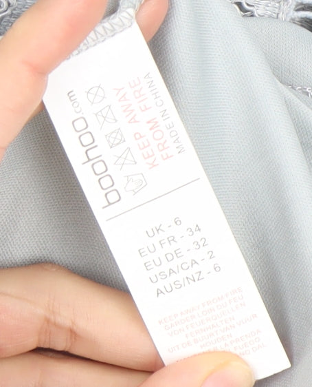 Boohoo Women Grey Lace Skater Dress Size 6 High Neck Sleeveless Party