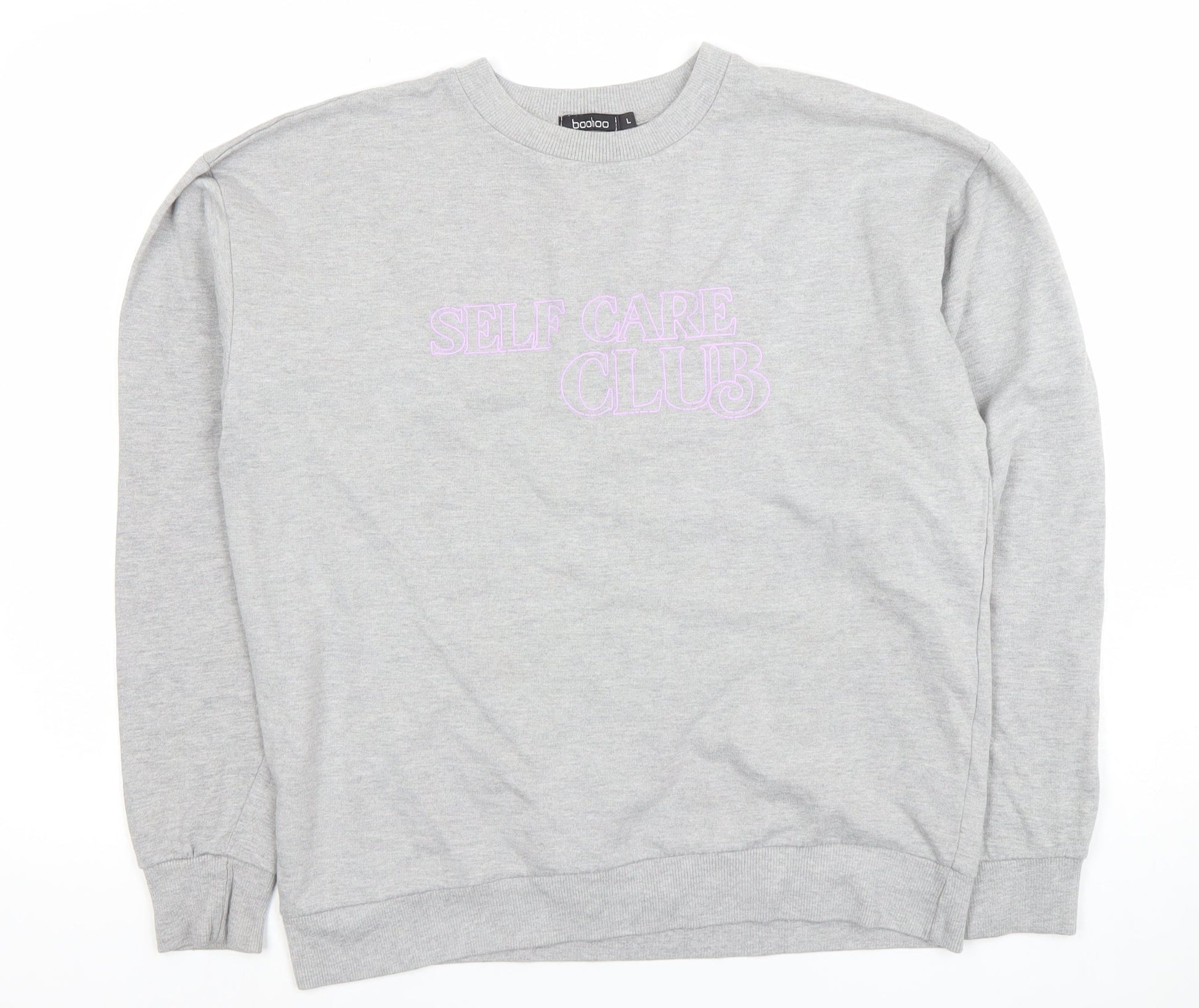 Boohoo Women Grey Self Care Club Sweatshirt L Crew Neck Pullover
