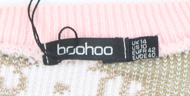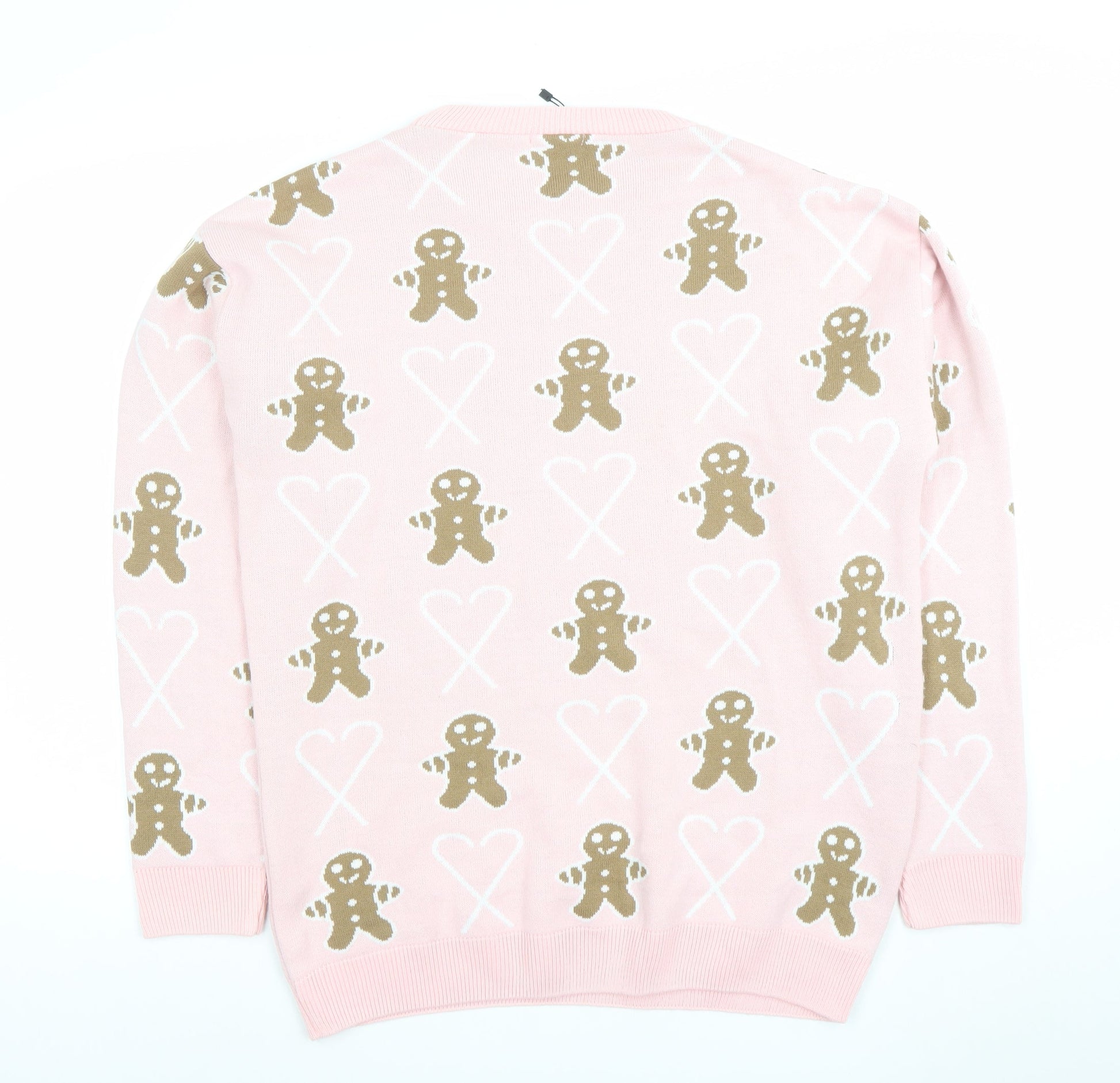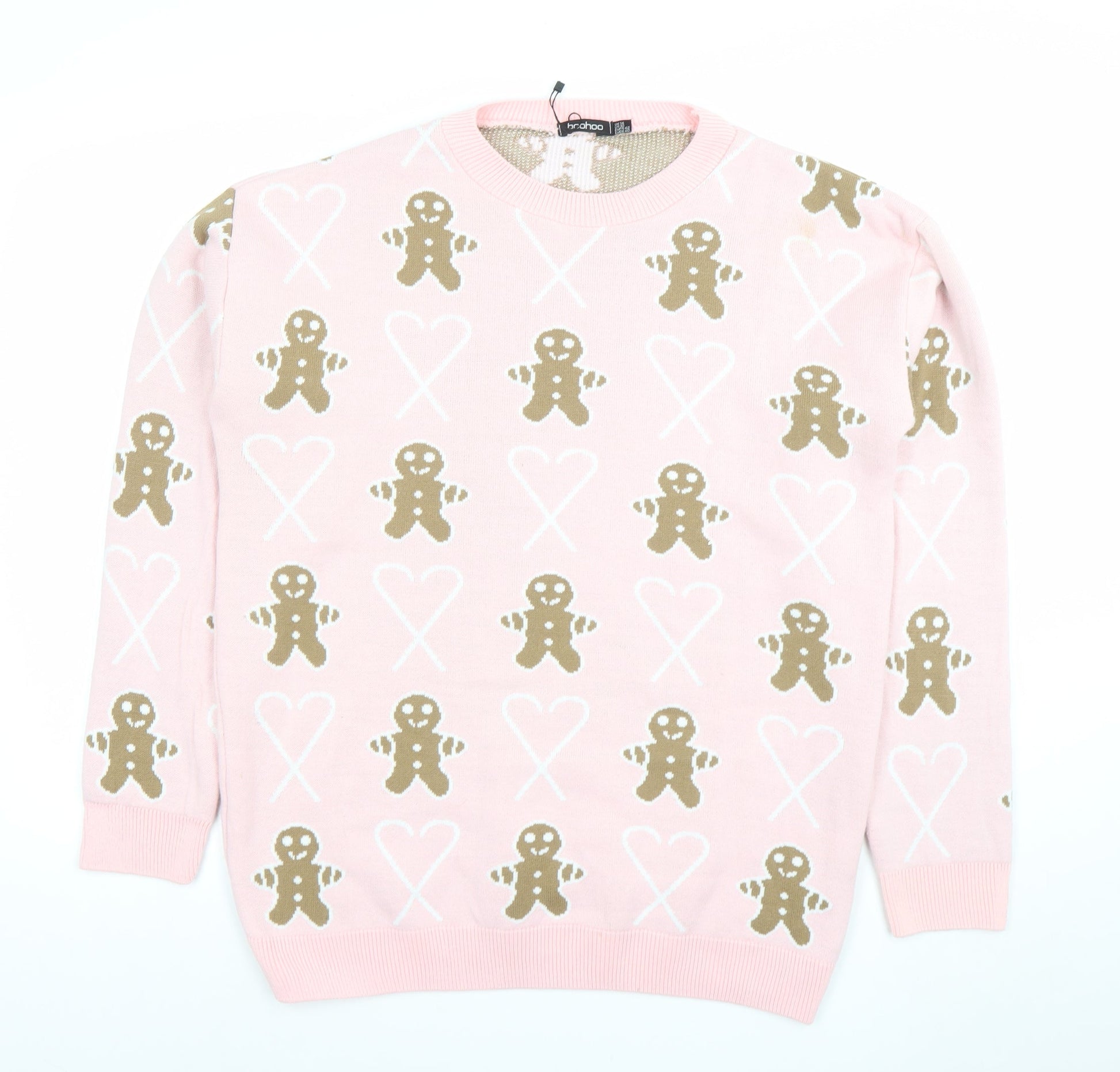 Boohoo Women Pink Gingerbread Crew Neck Jumper UK 14 Christmas Knit