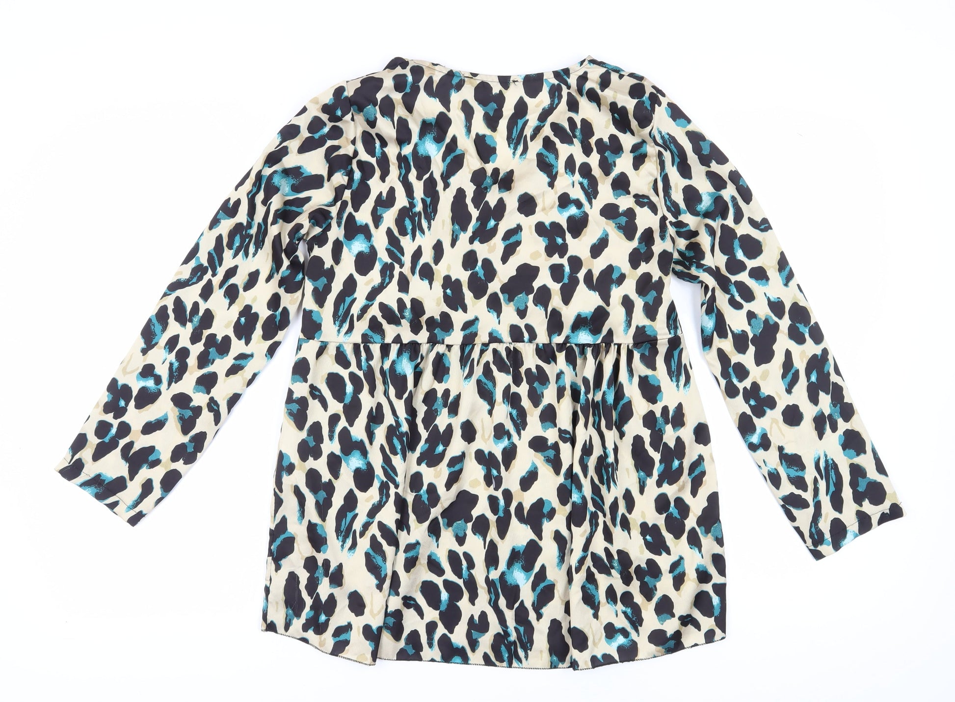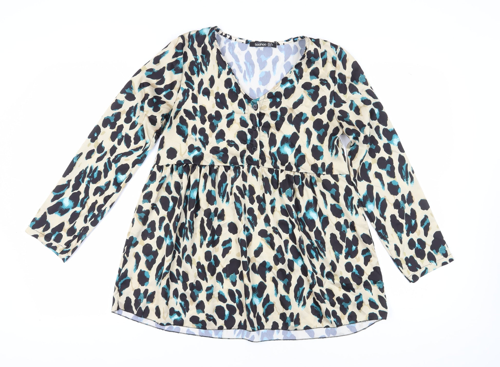 Boohoo Women’s Beige Animal Print Tunic Blouse Size 10