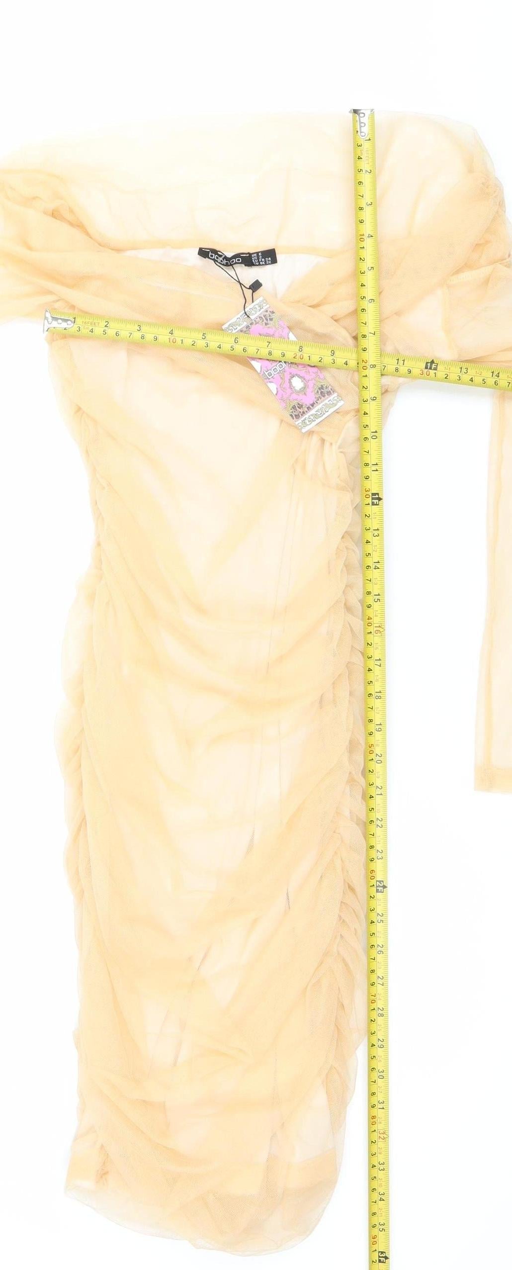 Boohoo Women’s Beige Bardot Bodycon Midi Party Dress Size 6