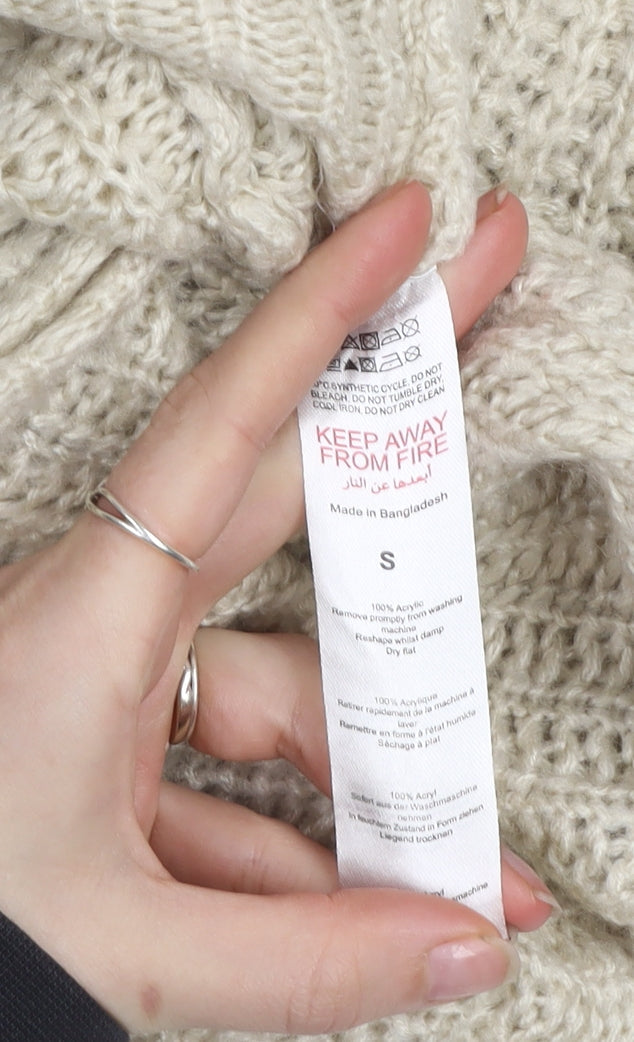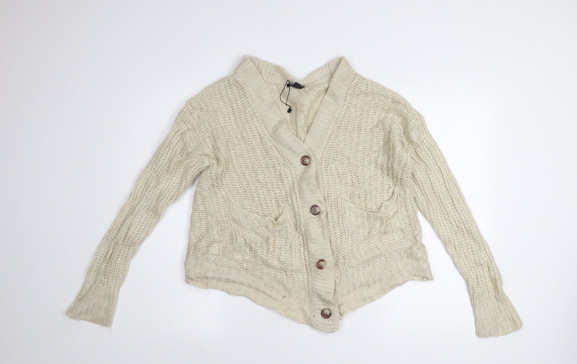 Boohoo Women’s Beige Chunky Knit V-Neck Cardigan Size S