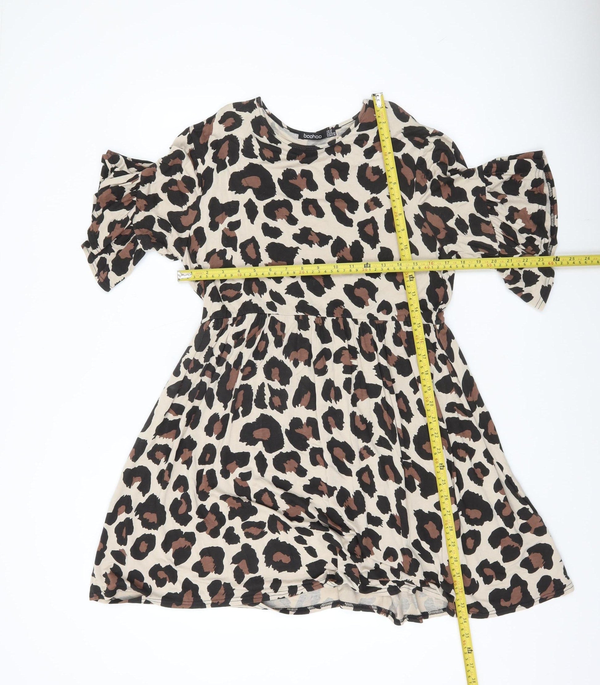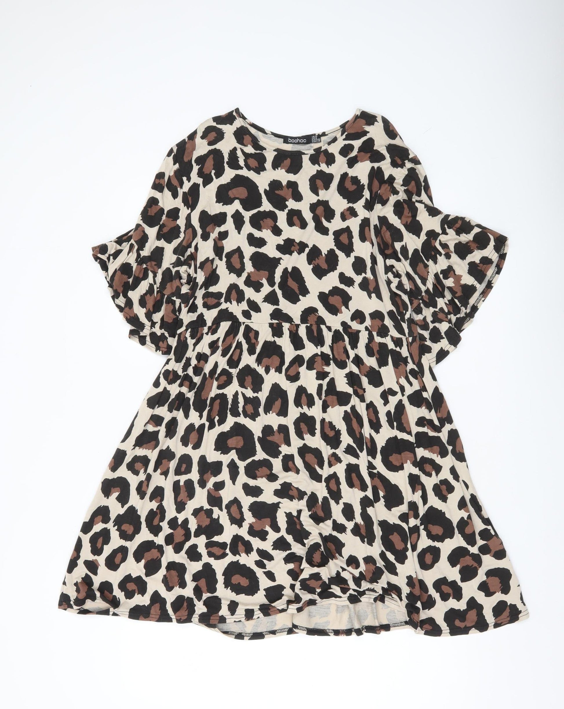 Boohoo Women’s Beige Leopard Print Swing Dress Size 12