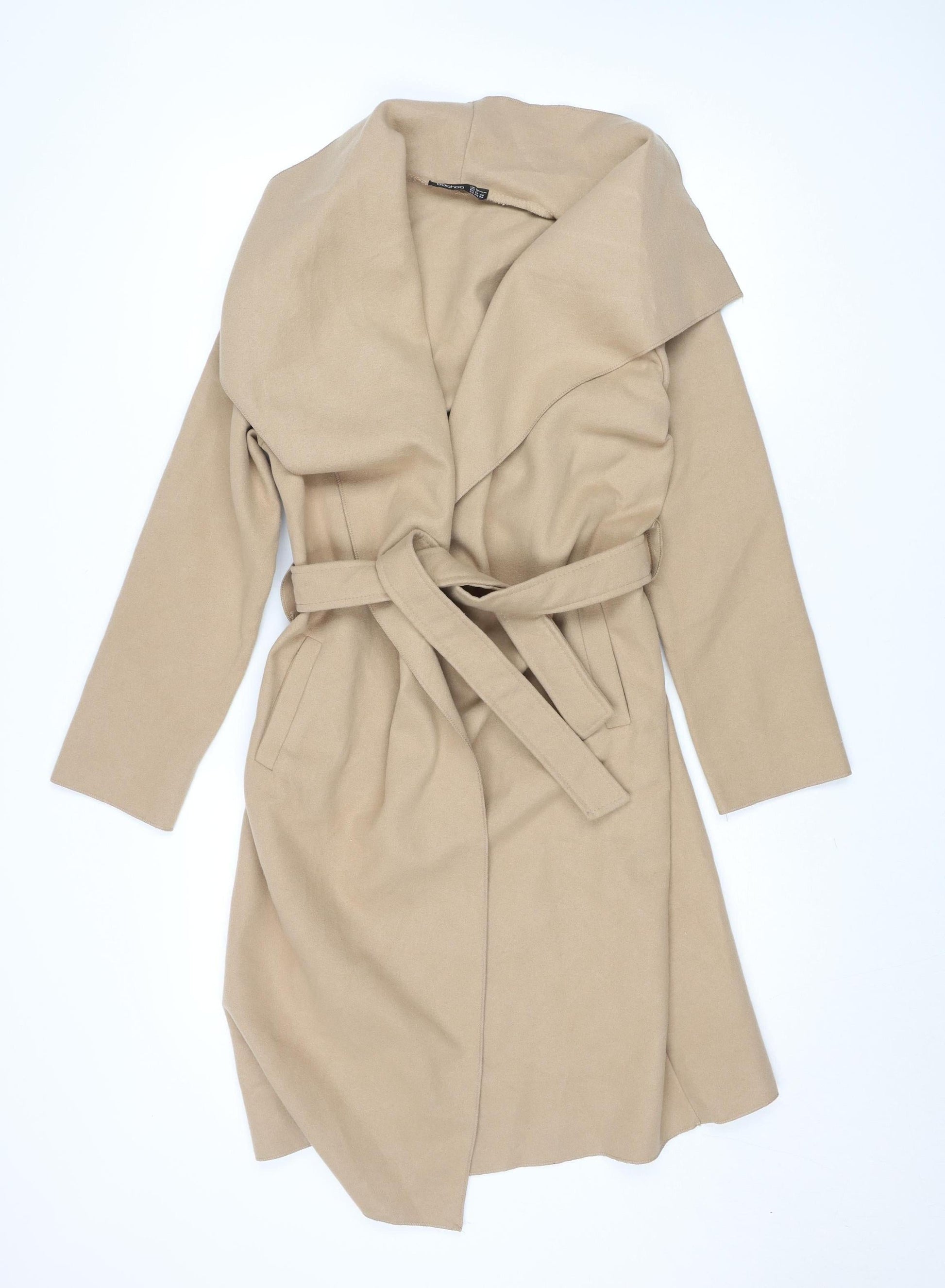 Boohoo Women’s Beige Long Belted Trench Coat Size 8