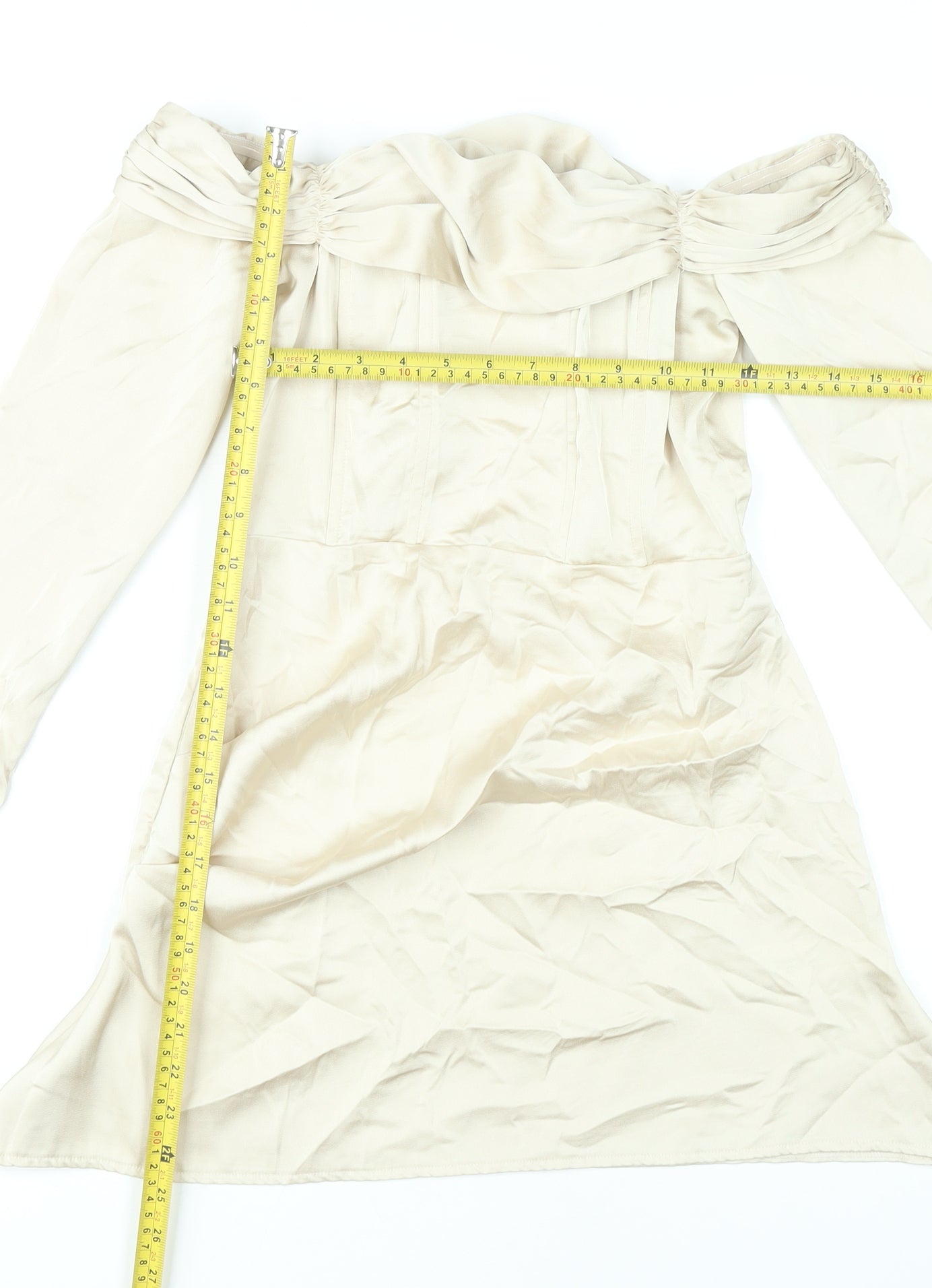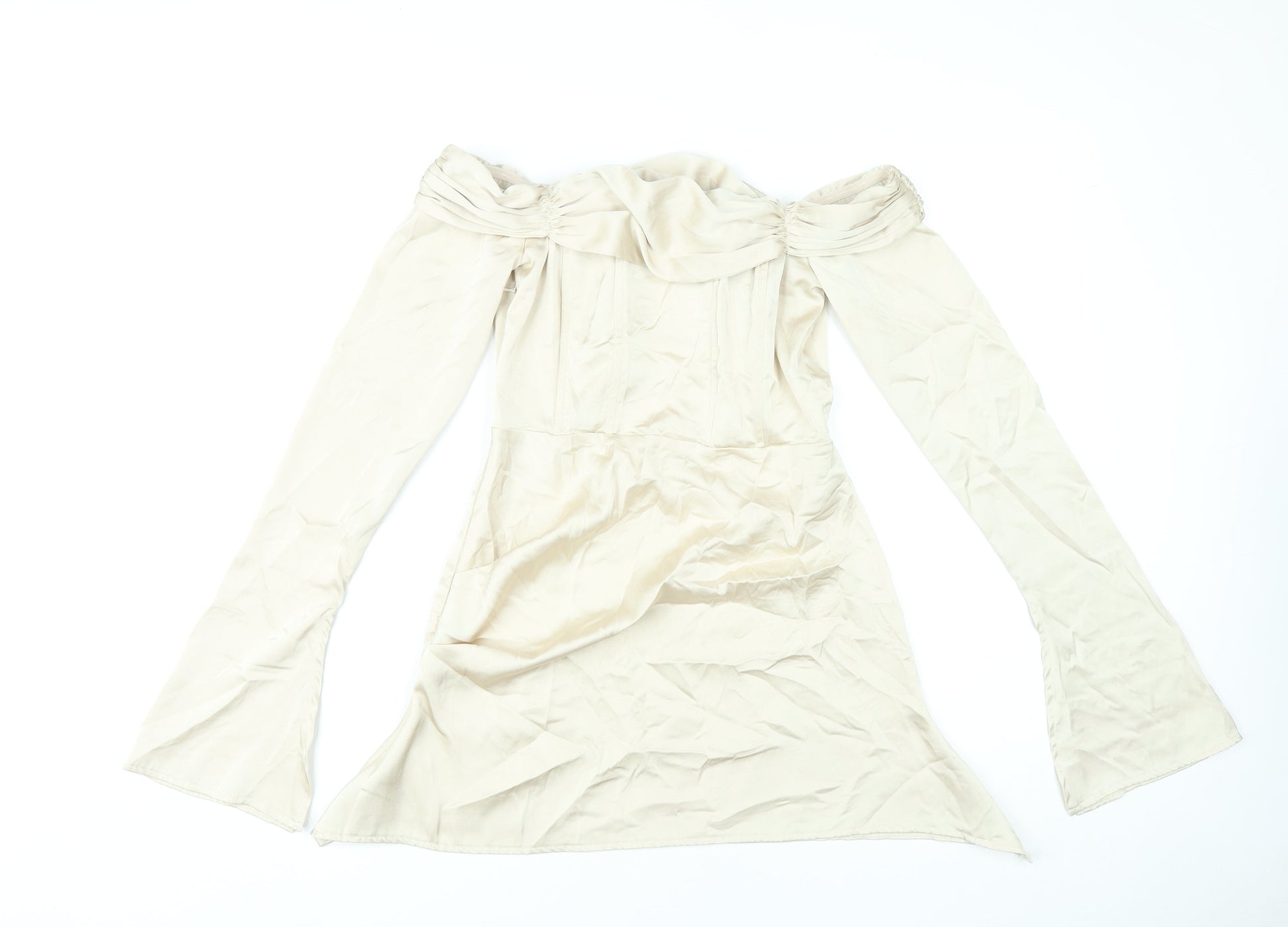 Boohoo Women’s Beige Off Shoulder Bodycon Mini Dress UK 8