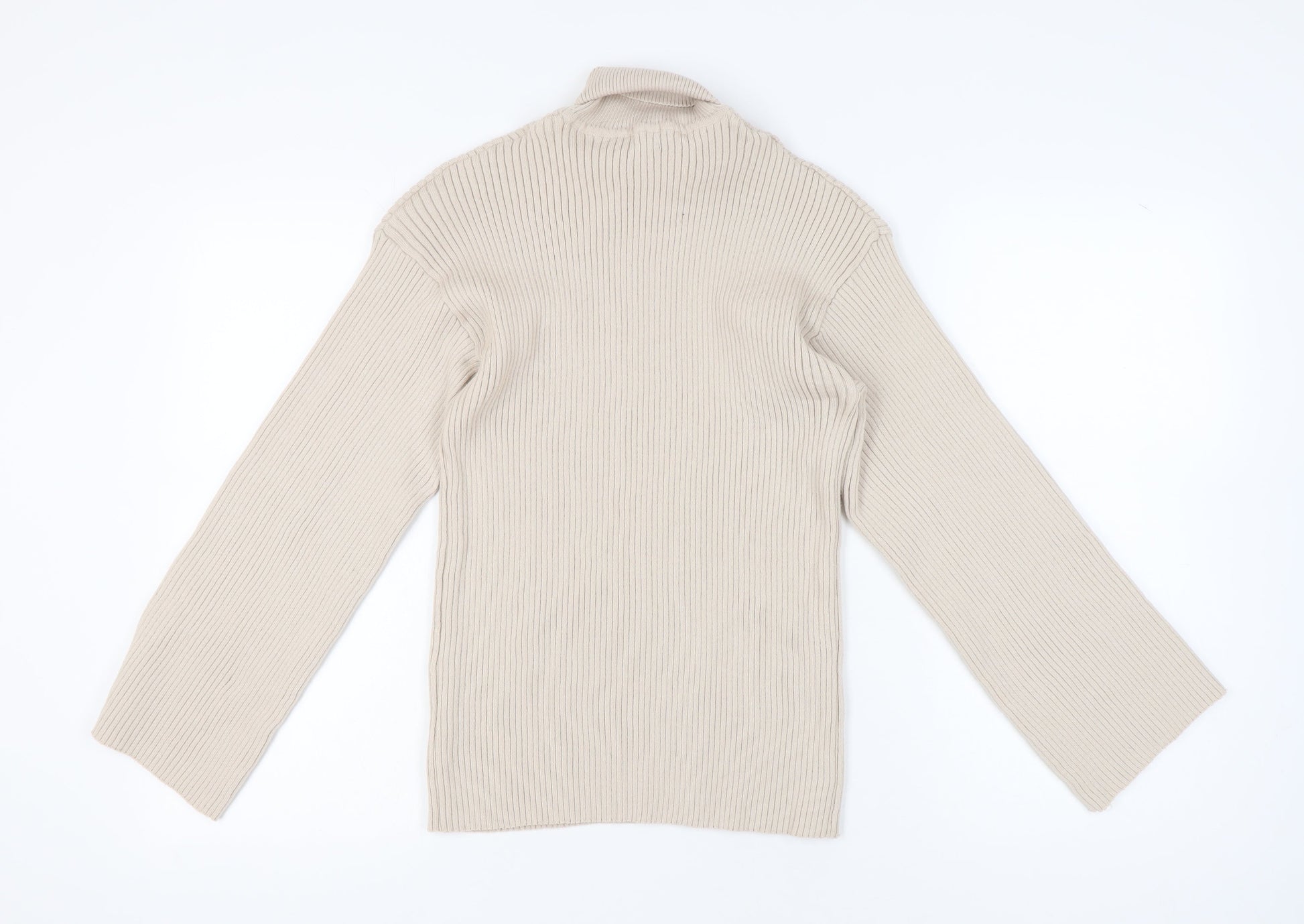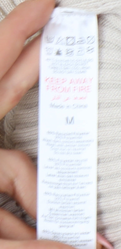 Boohoo Women’s Beige Roll Neck Rib-Knit Pullover Jumper Size M