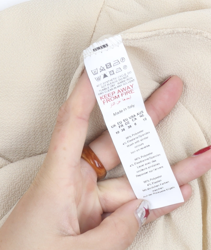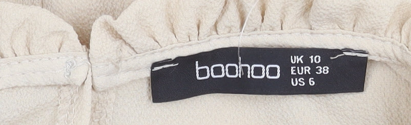 Boohoo Women’s Beige Ruffle Blouse UK 10 Long Sleeve Workwear Top