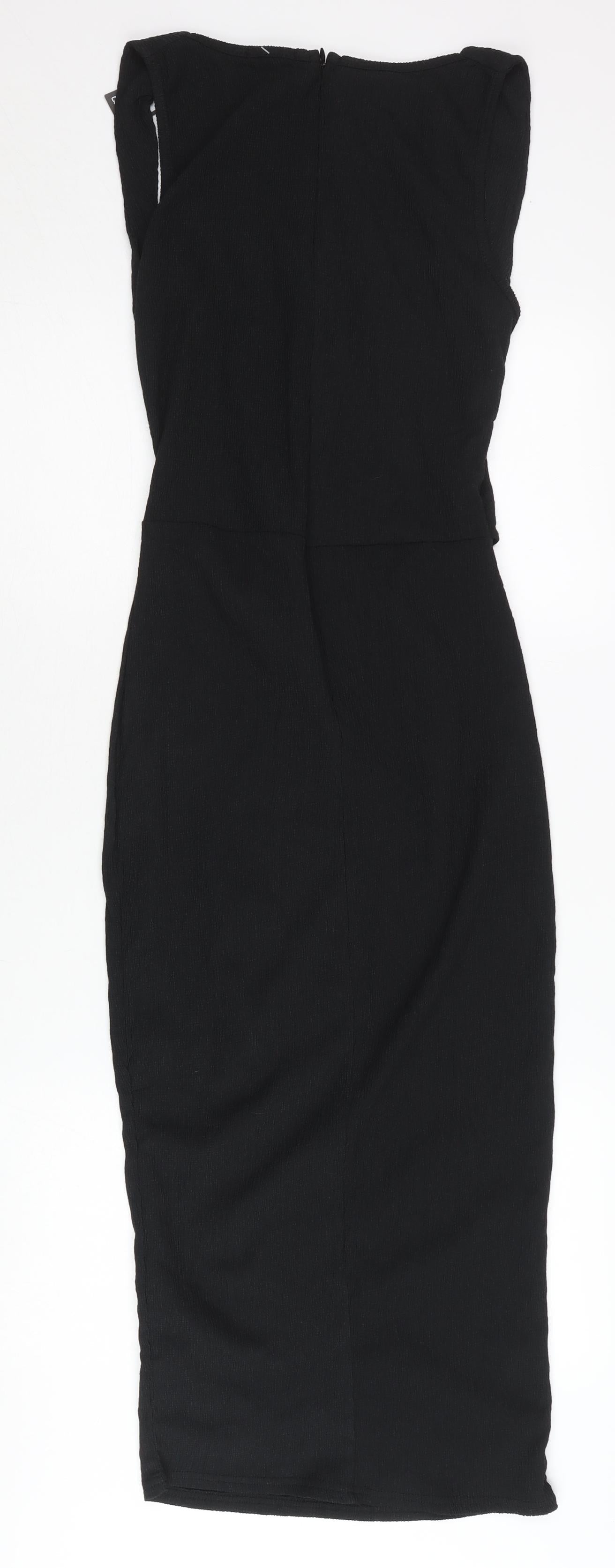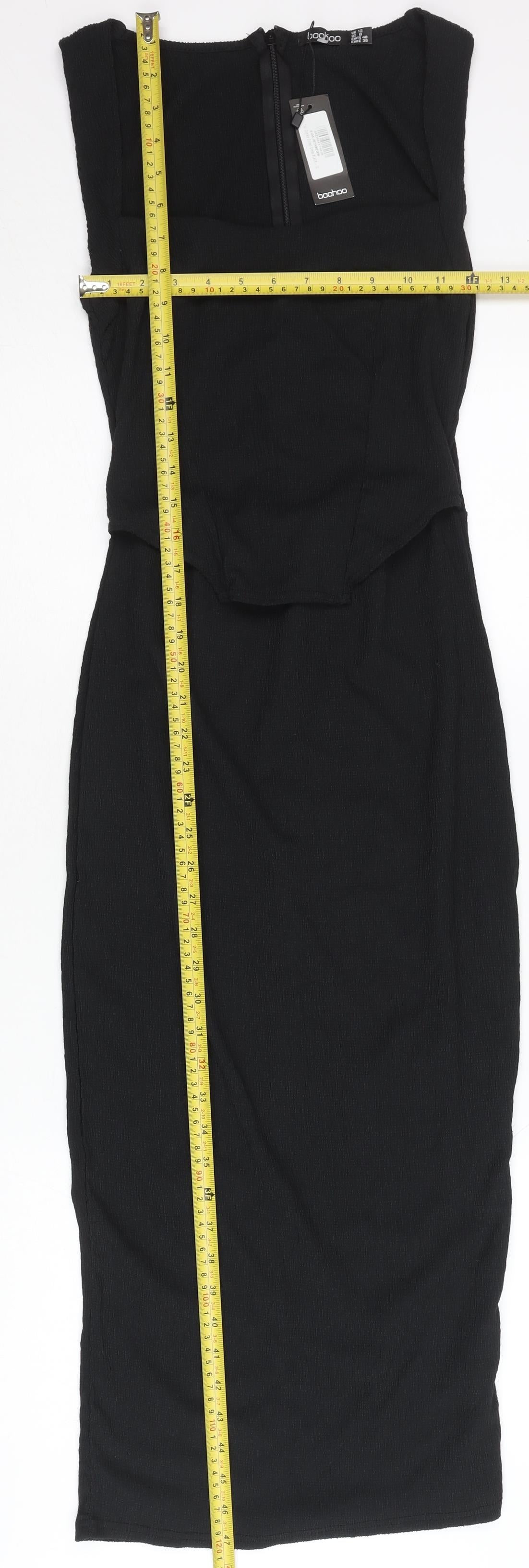 Boohoo Women’s Black Bodycon Midi Dress Size 12 Scoop Neck Sleeveless