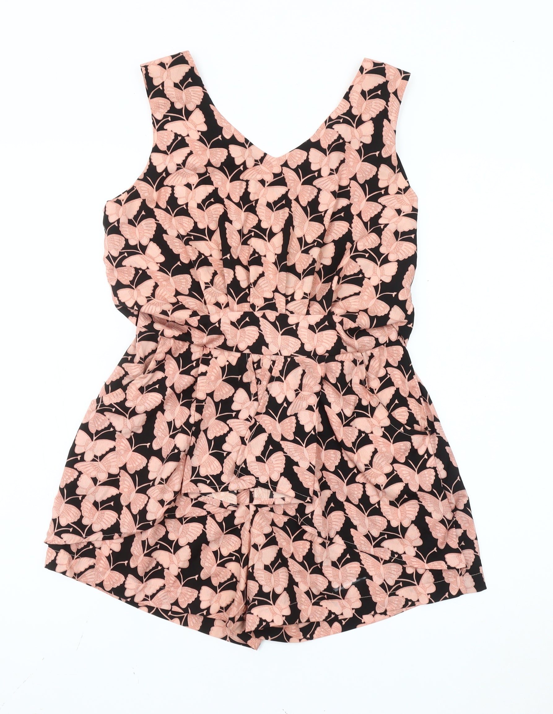 Boohoo Women’s Black Butterfly Print V-Neck Sleeveless Playsuit UK 6