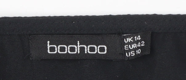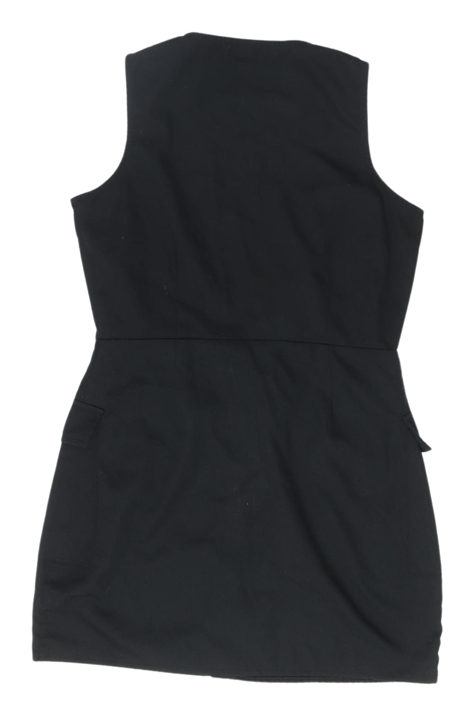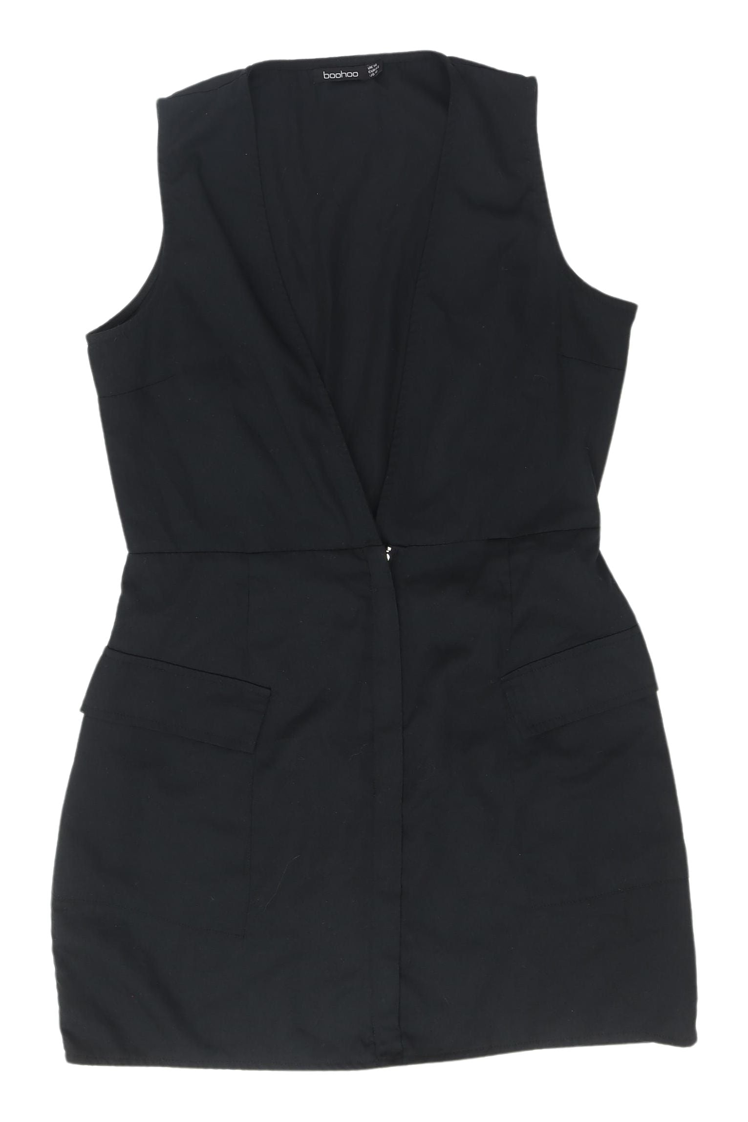 Boohoo Women’s Black Pinafore Dress, Size 14, V-Neck Zip Accent