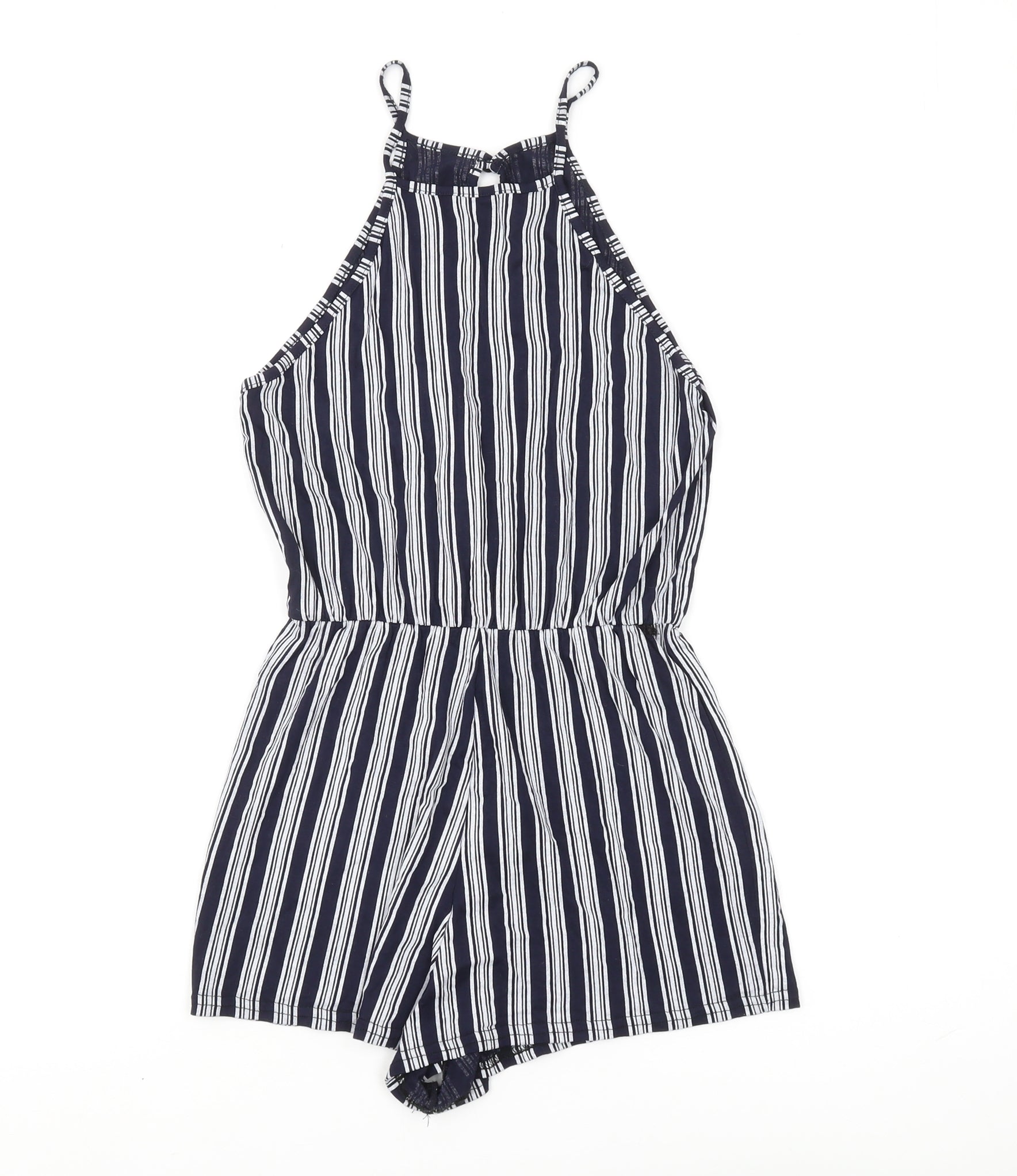 Boohoo Women’s Black Striped Halter Playsuit Size 8