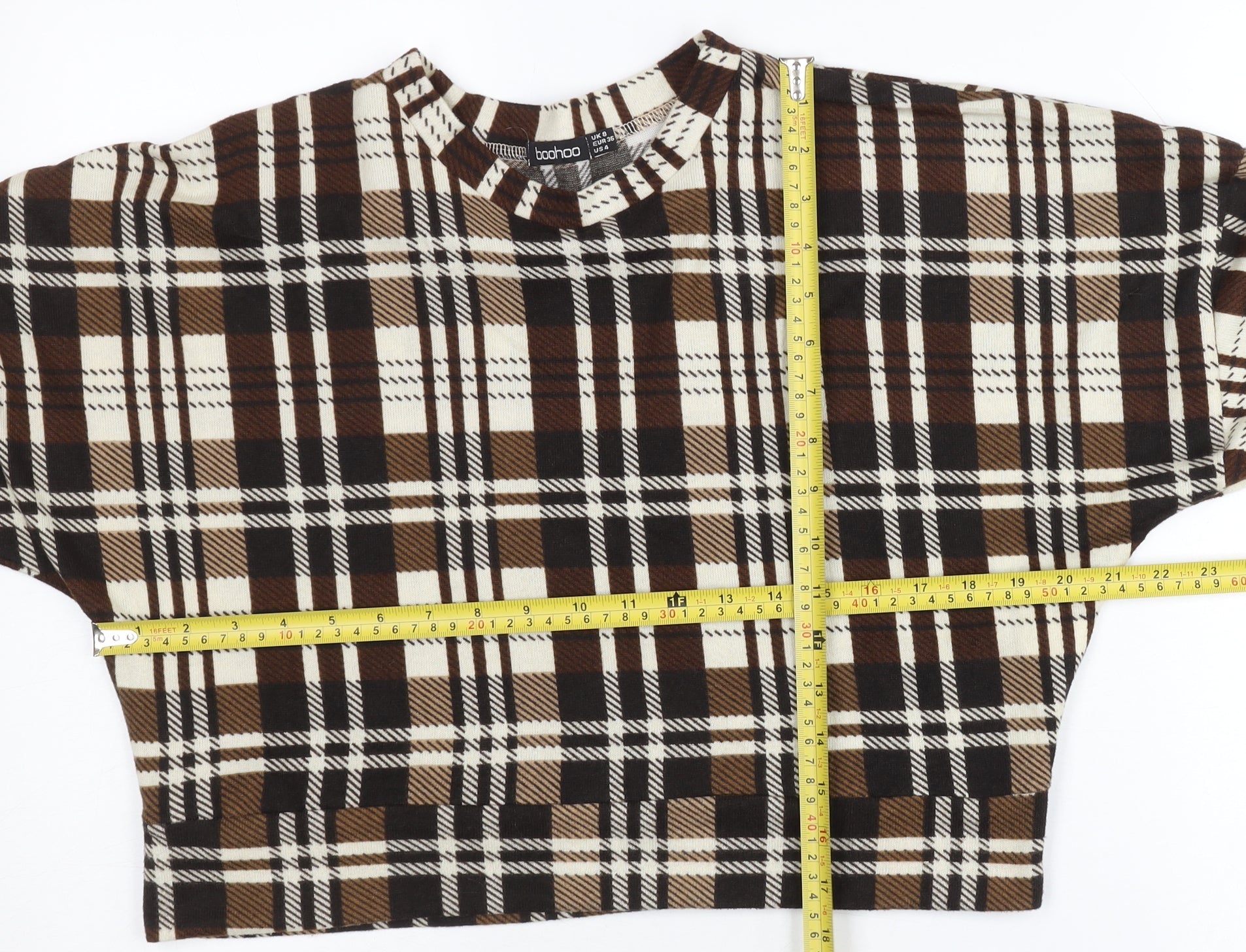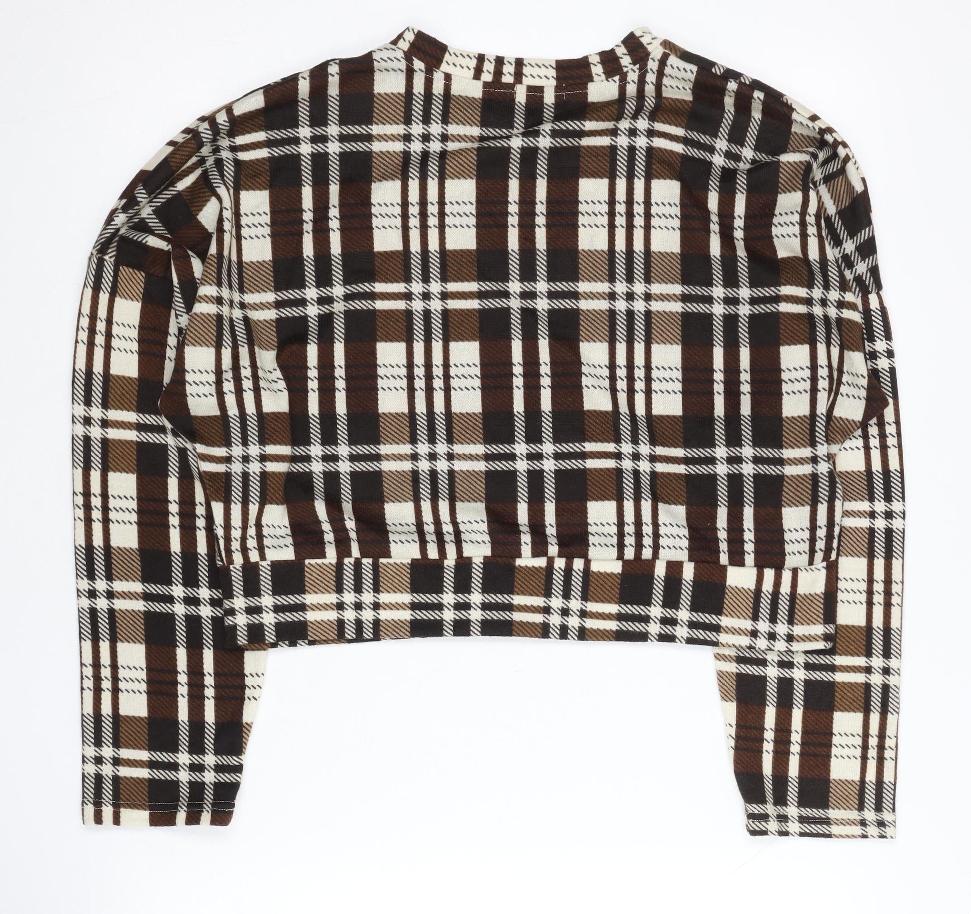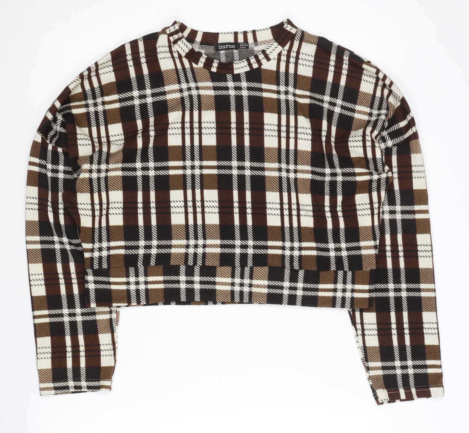 Boohoo Women’s Brown Plaid Crew Neck Pullover Jumper UK 8