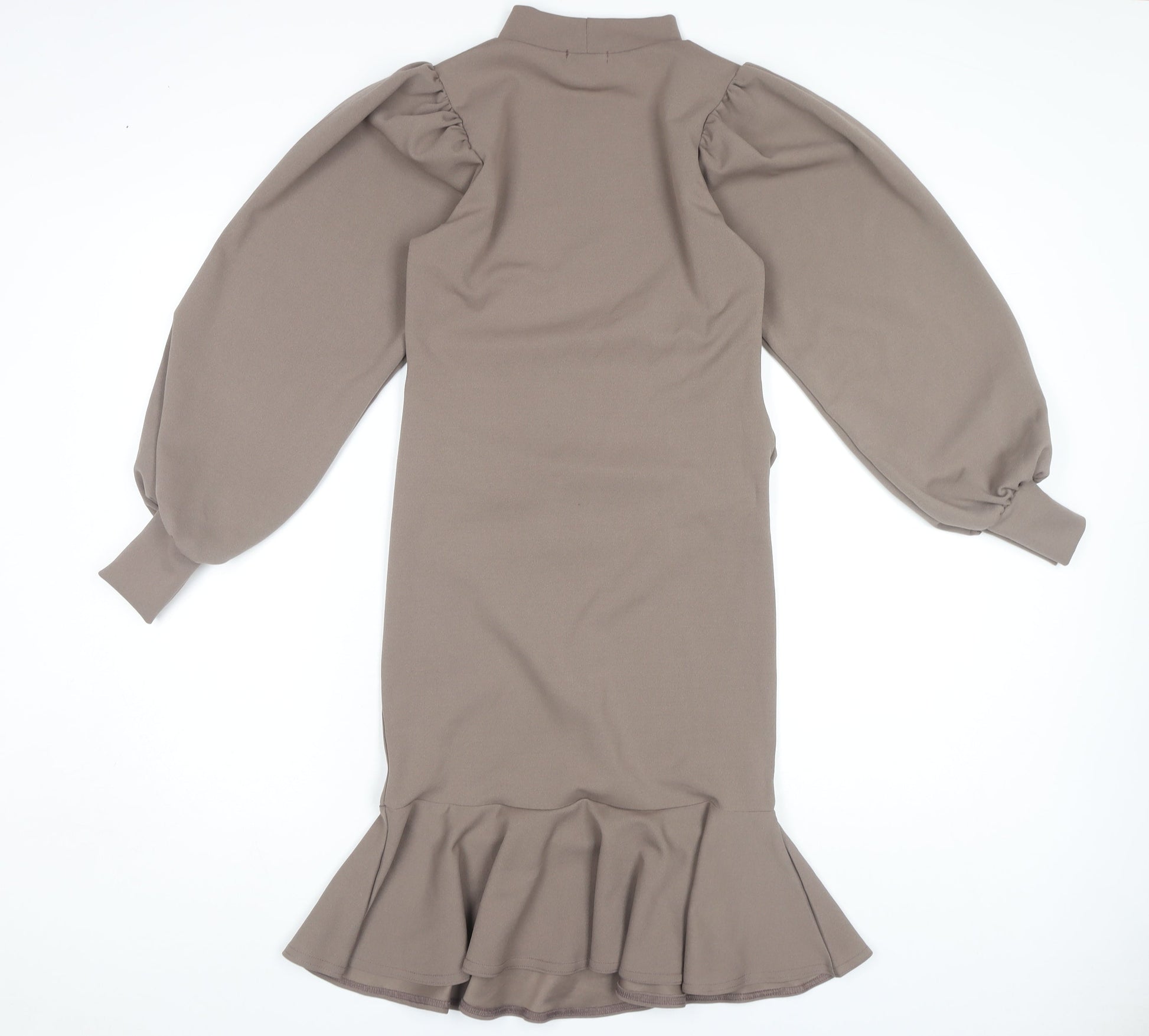 Boohoo Women’s Brown Sheath Dress Size 10, High Neck, Ruched