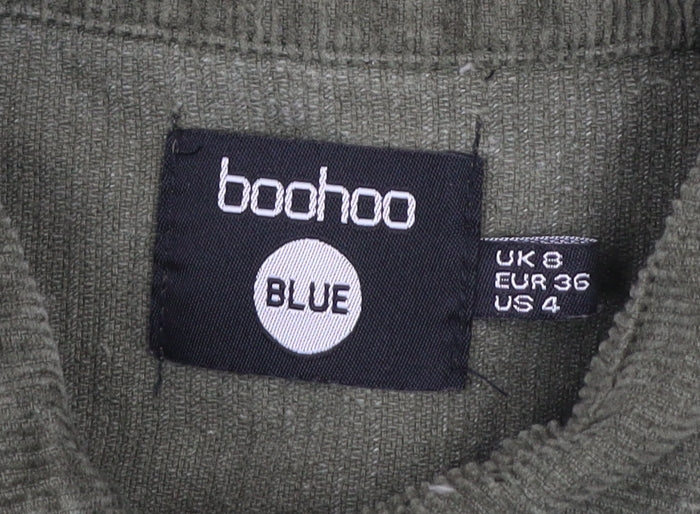Boohoo Women’s Green Corduroy Button-Up Shirt Size 8