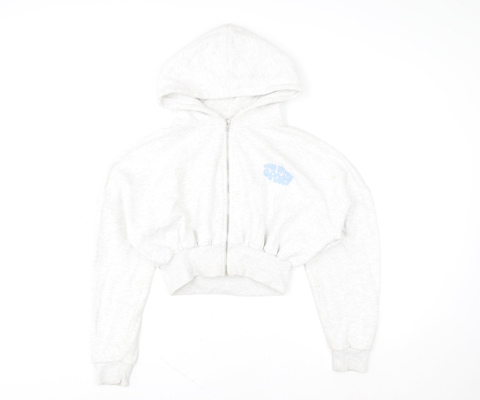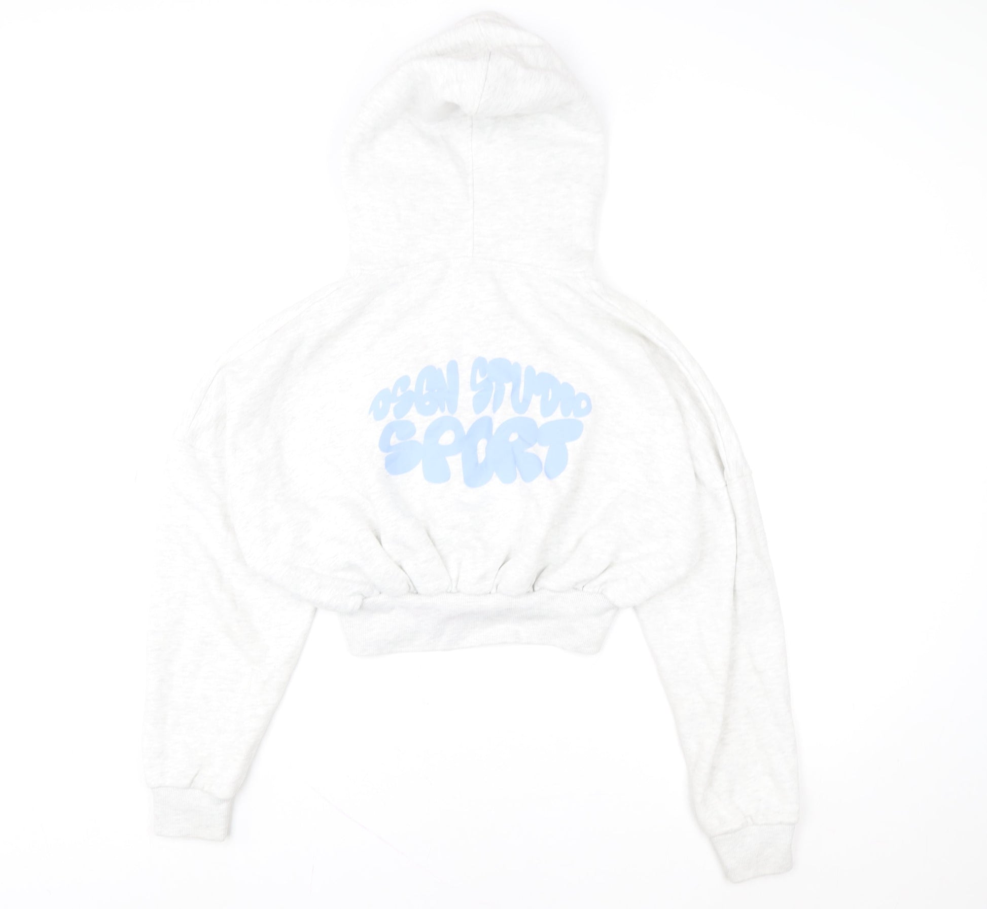 Boohoo Women’s Grey Full Zip Hoodie Small Cropped Sport Logo