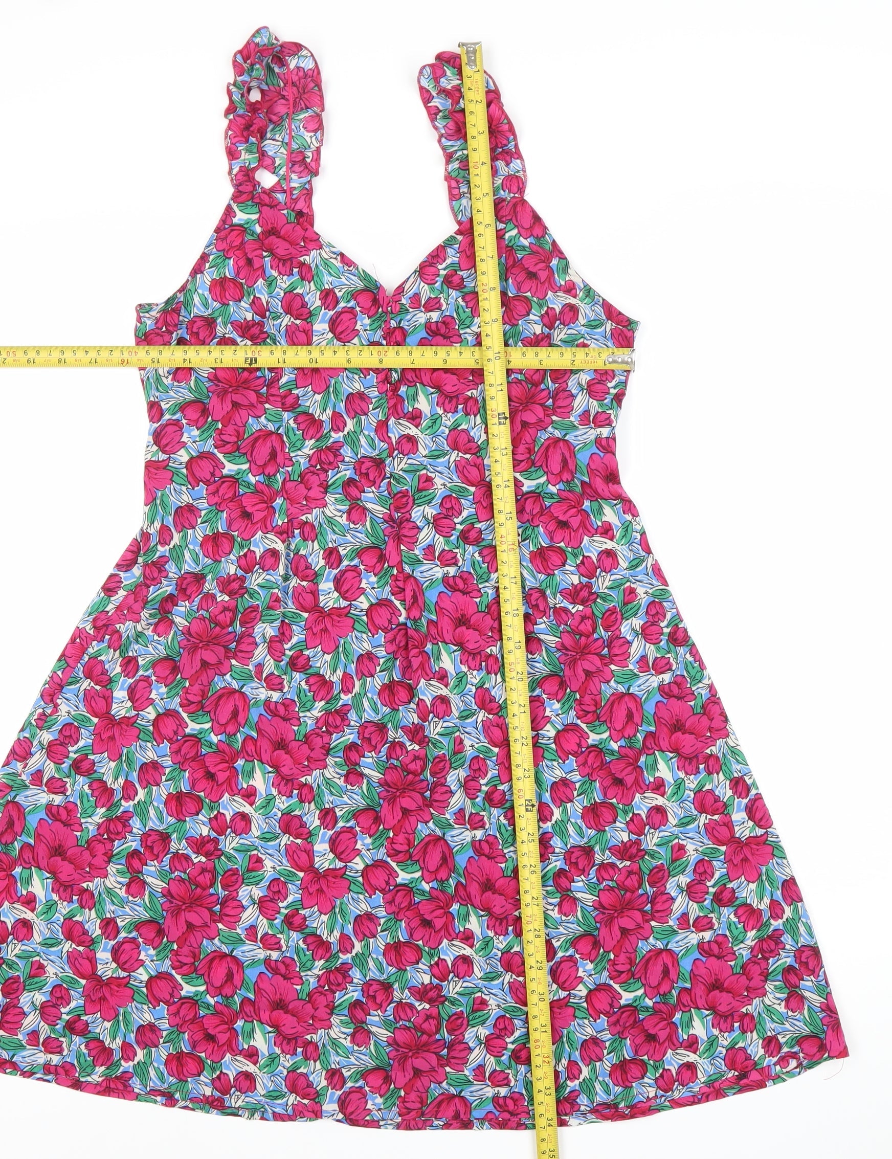 Boohoo Women’s Multicoloured Floral A-Line Dress UK 12 Ruffle Strap
