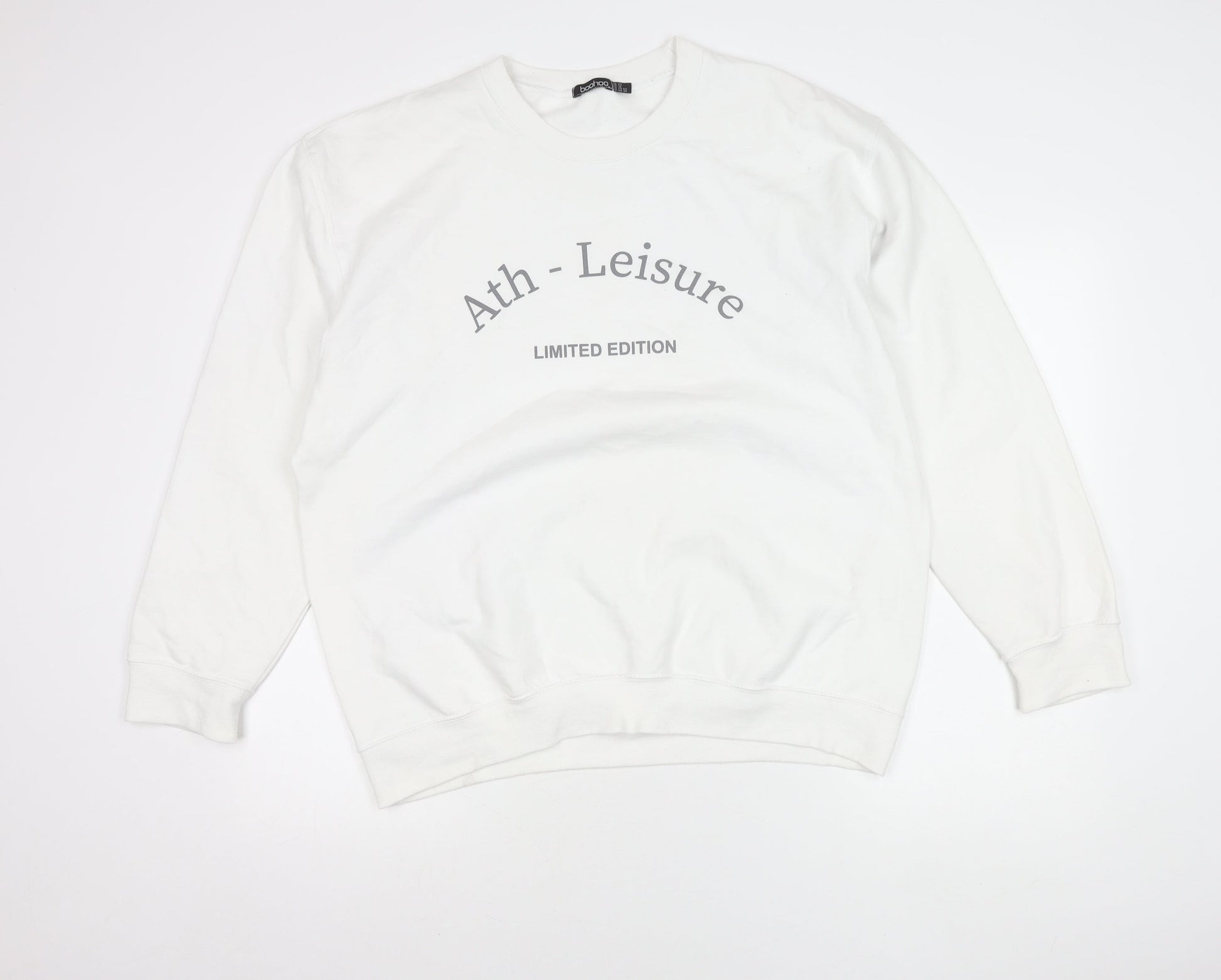 Boohoo Women’s White Plus Size 22 Pullover Logo Sweatshirt