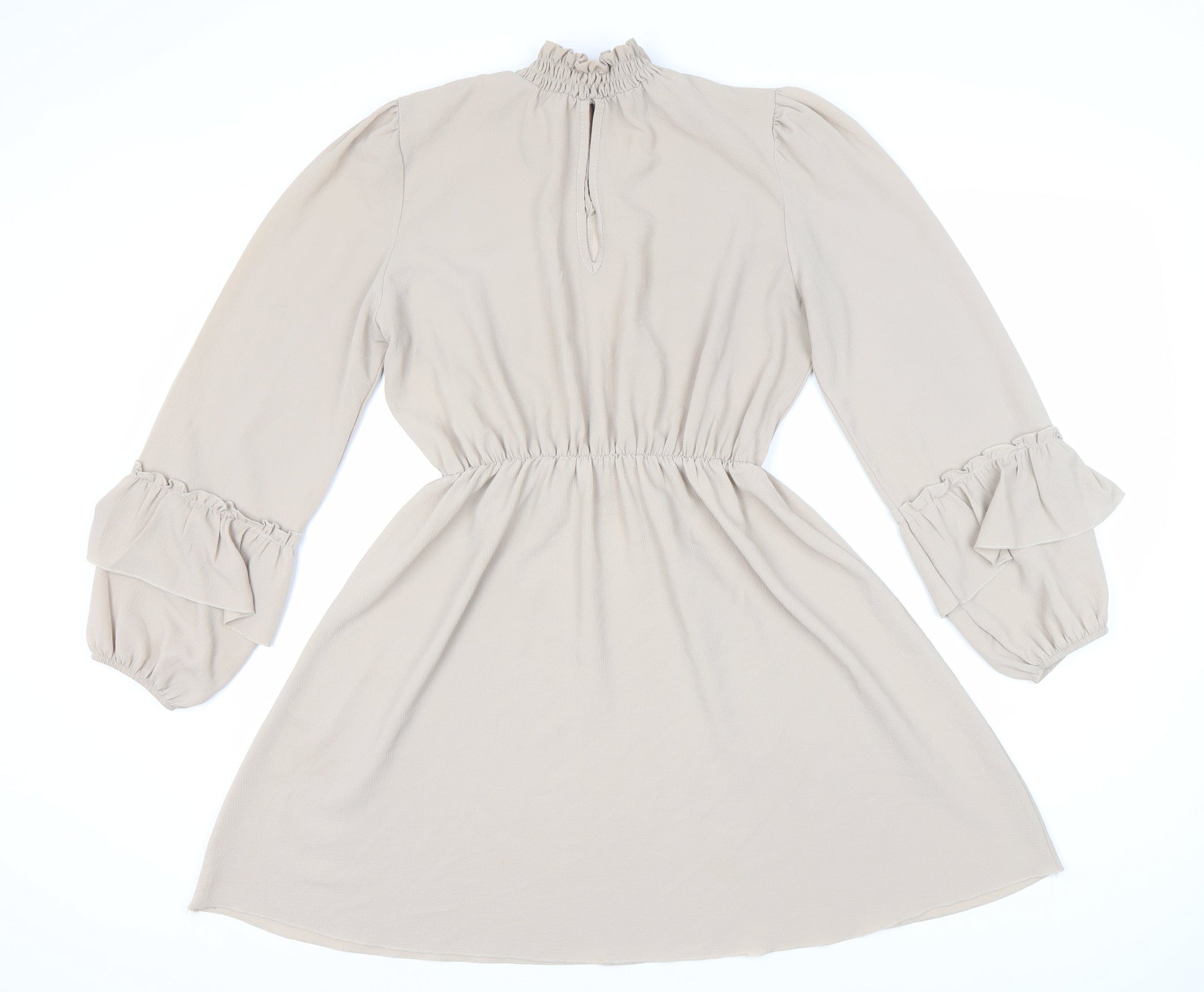 Boohoo Women's Beige A-Line Dress UK Size 12 Long Sleeve