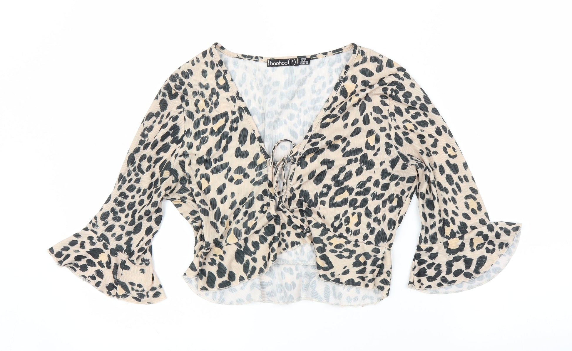 Boohoo Womens Beige Animal Print Basic Blouse Size 12 - Leopard print