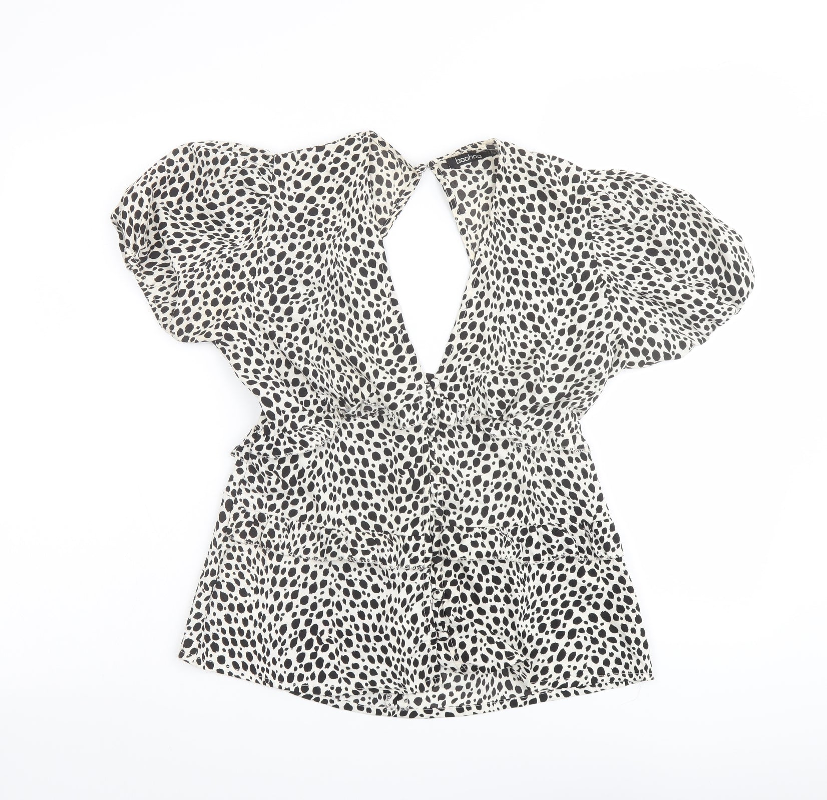 Boohoo Womens Beige Animal Print Polyester Basic Blouse Size 6 V-Neck
