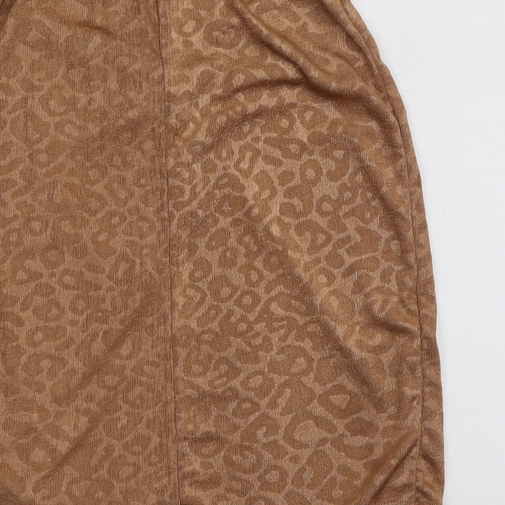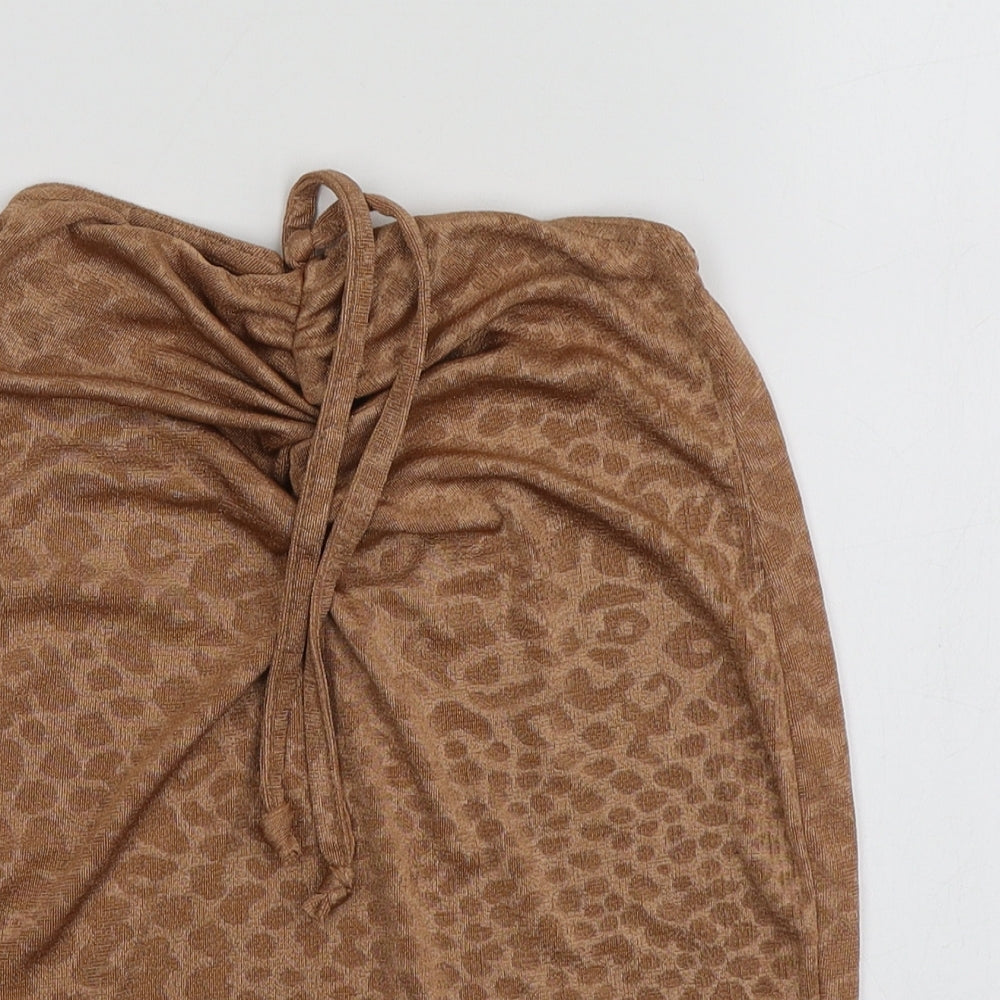 Boohoo Womens Beige Animal Print Polyester Basic T-Shirt Size 8 Off the Shoulder