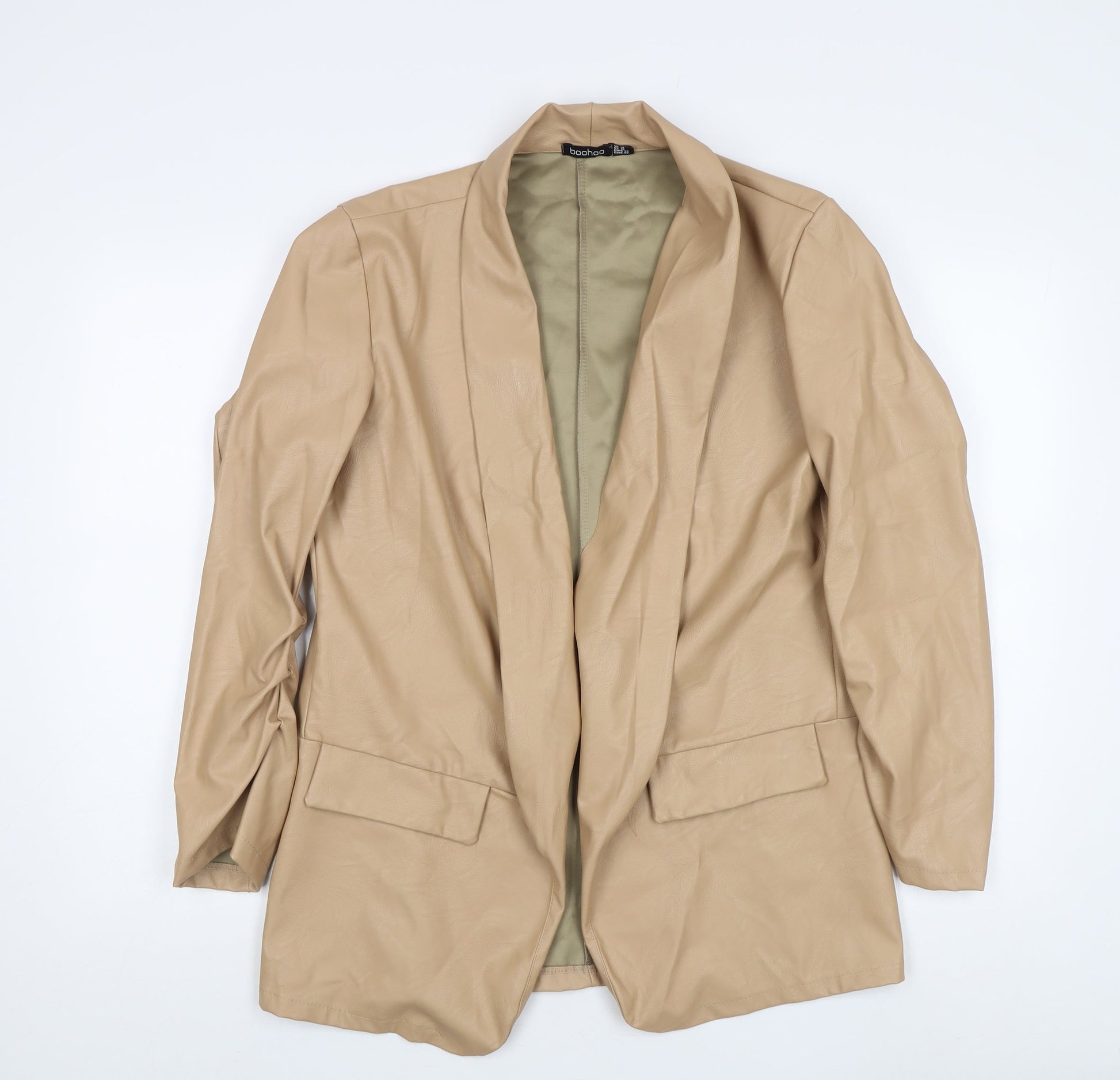 Boohoo Women's Beige Faux Leather Blazer UK 14