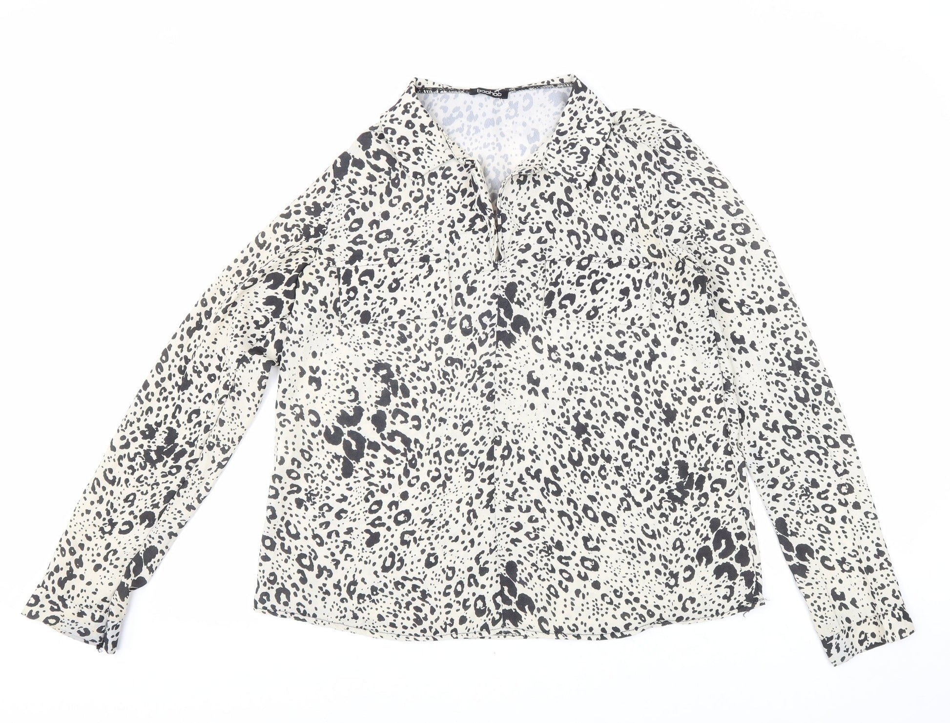 Boohoo Womens Beige Geometric Polyester Basic Blouse Size 8 Collared
