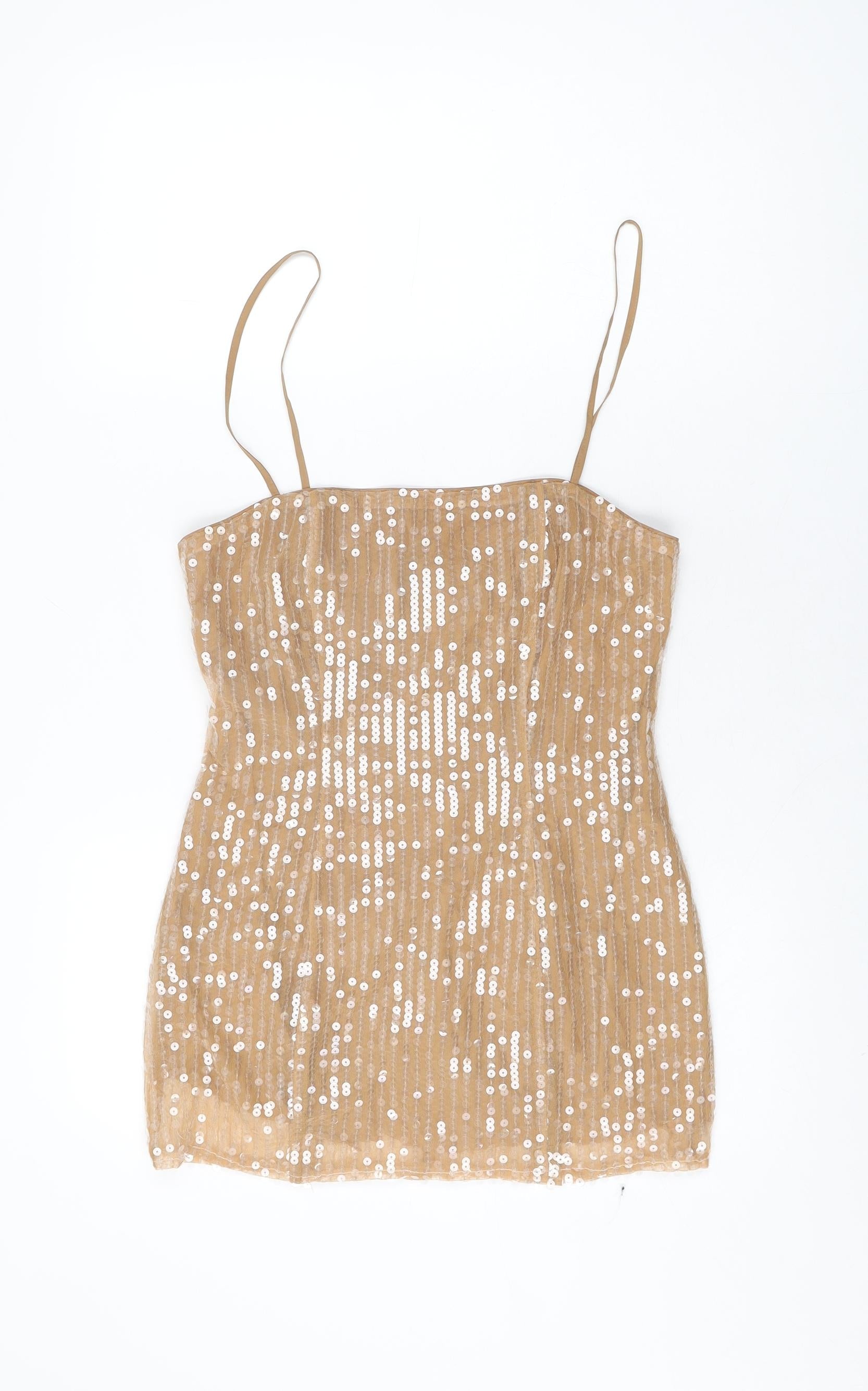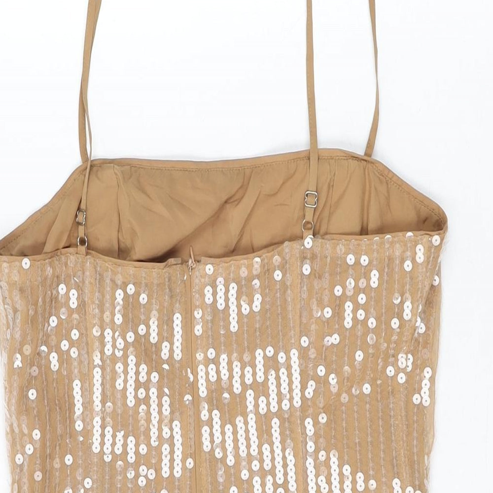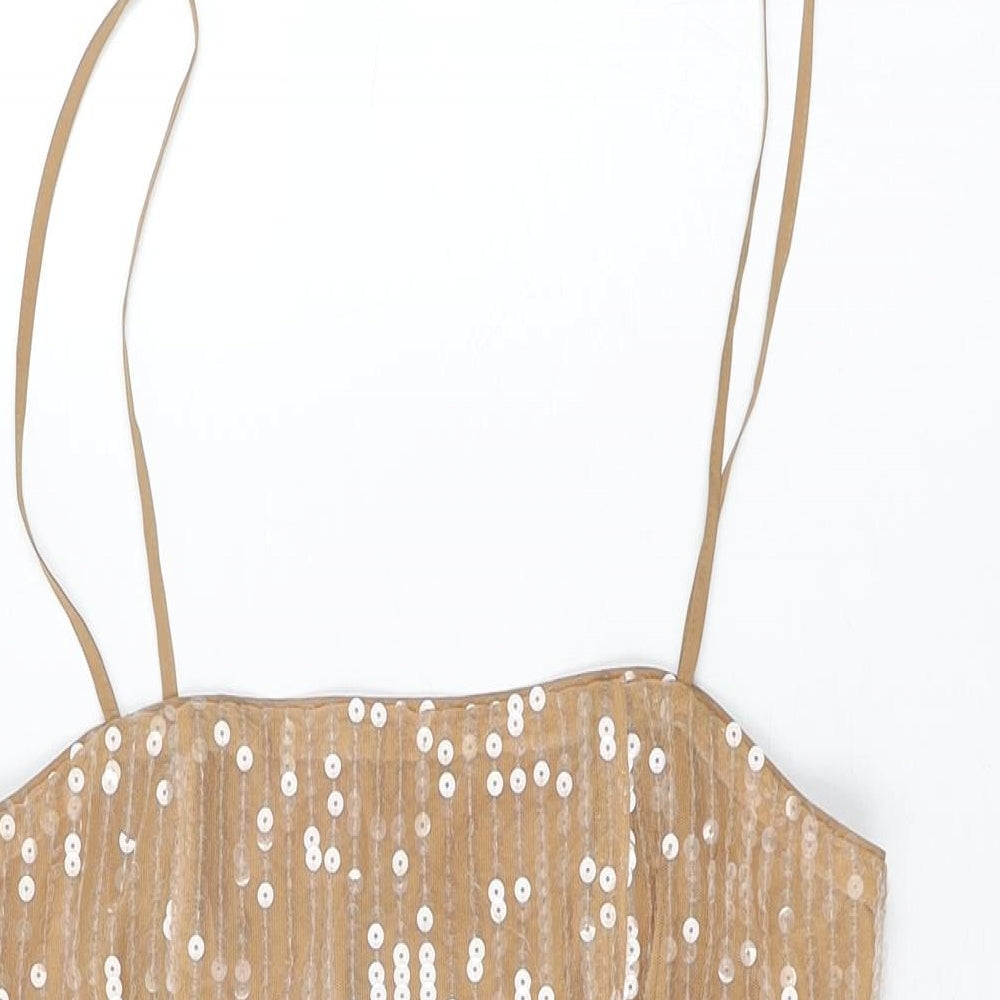 Boohoo Womens Beige Polyester Basic T-Shirt Size 10 Square Neck - Sequins