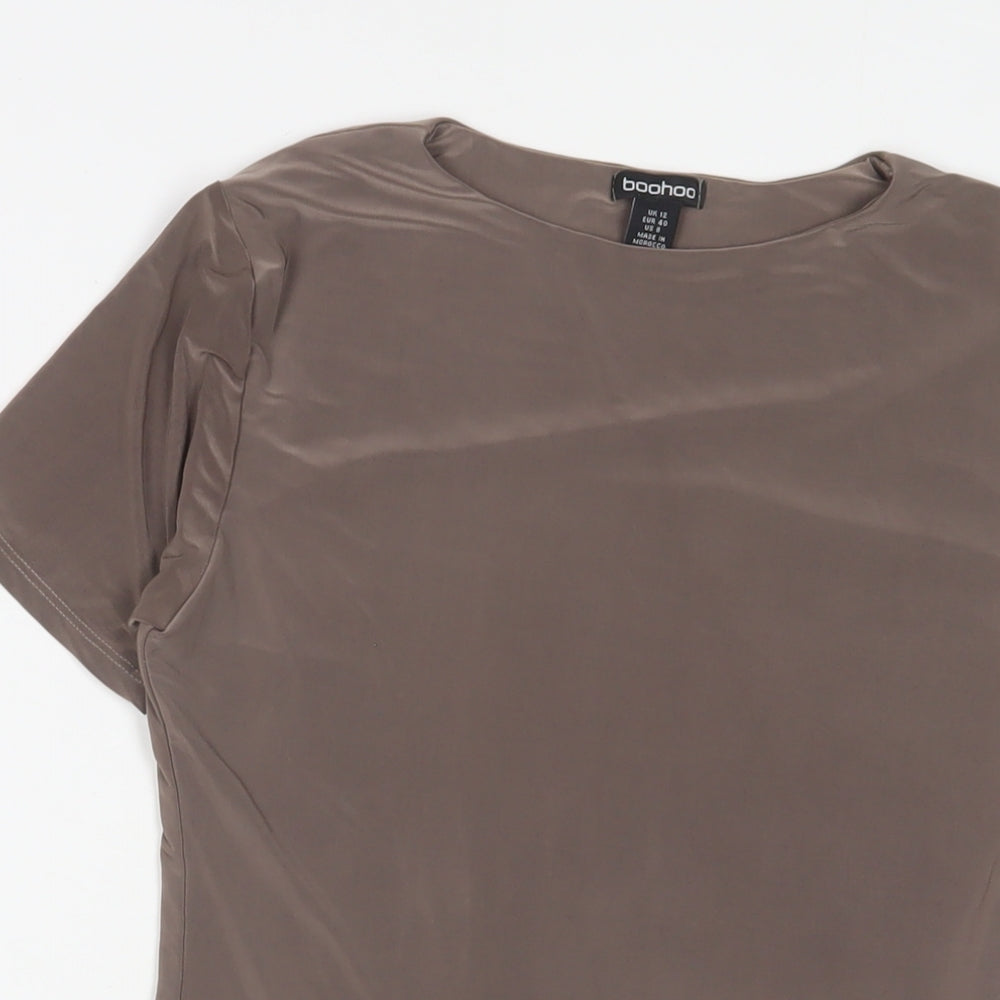 Boohoo Womens Beige Polyester Bodysuit One-Piece Size 12 Snap