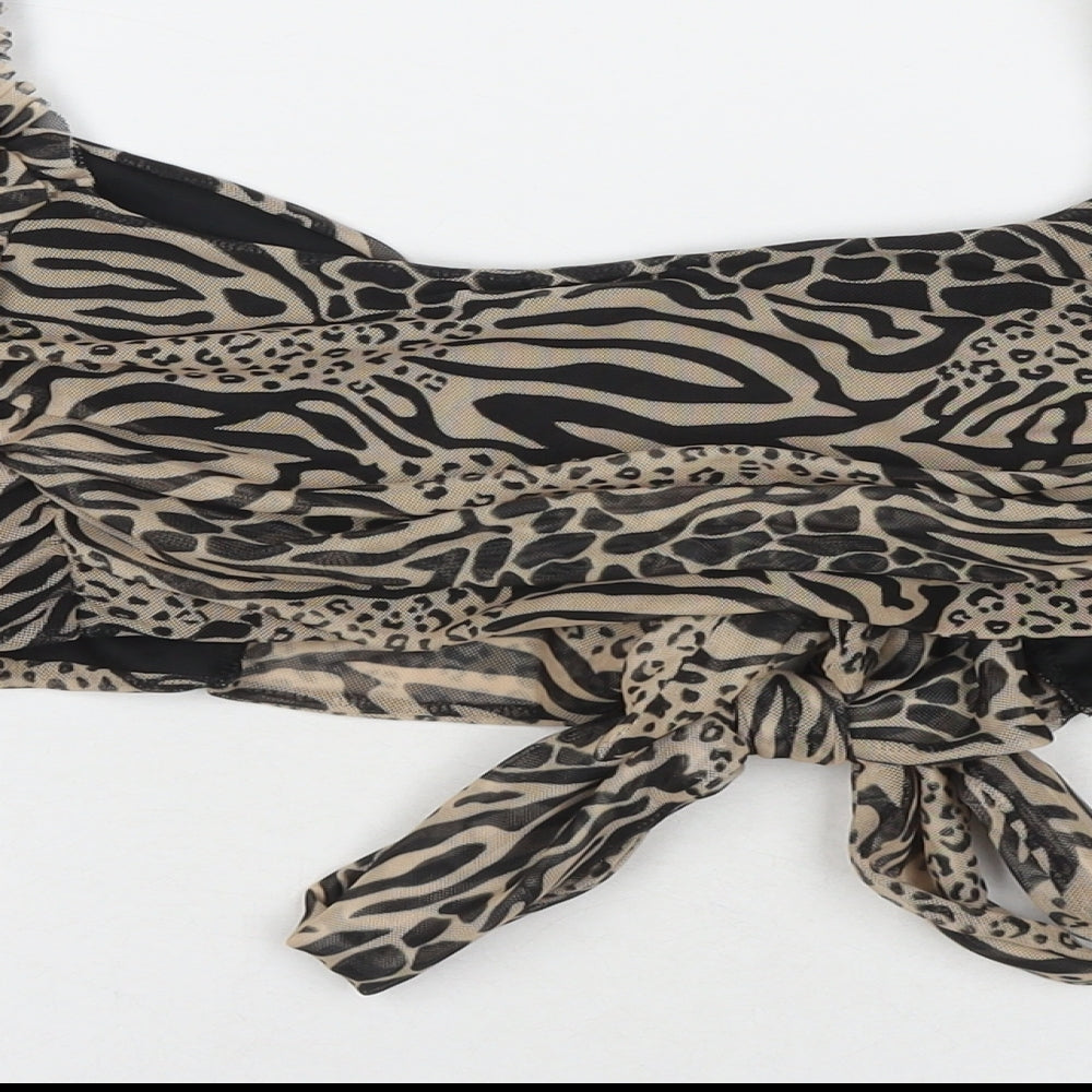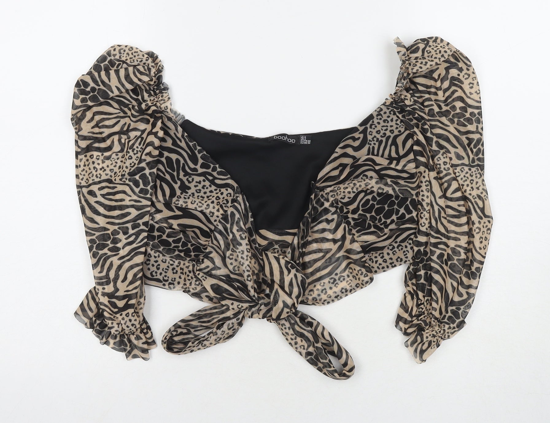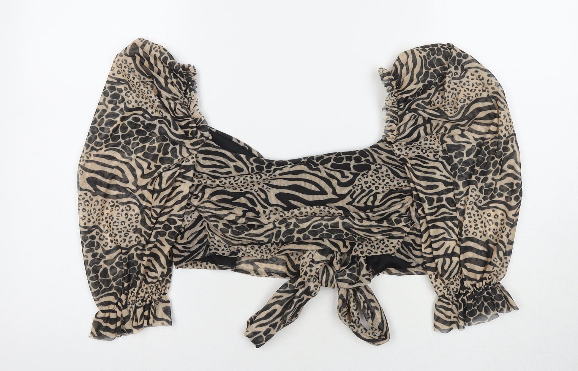 Boohoo Womens Beige Polyester Cropped Blouse Size 6 Round Neck