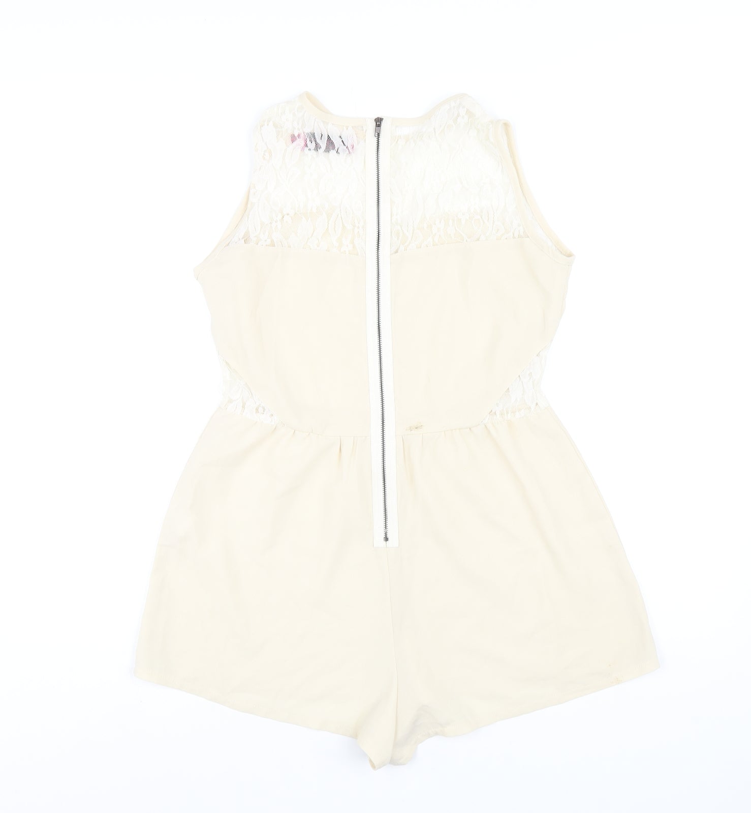 Boohoo Womens Beige Polyester Playsuit One-Piece Size 8 Zip - Lace Detail