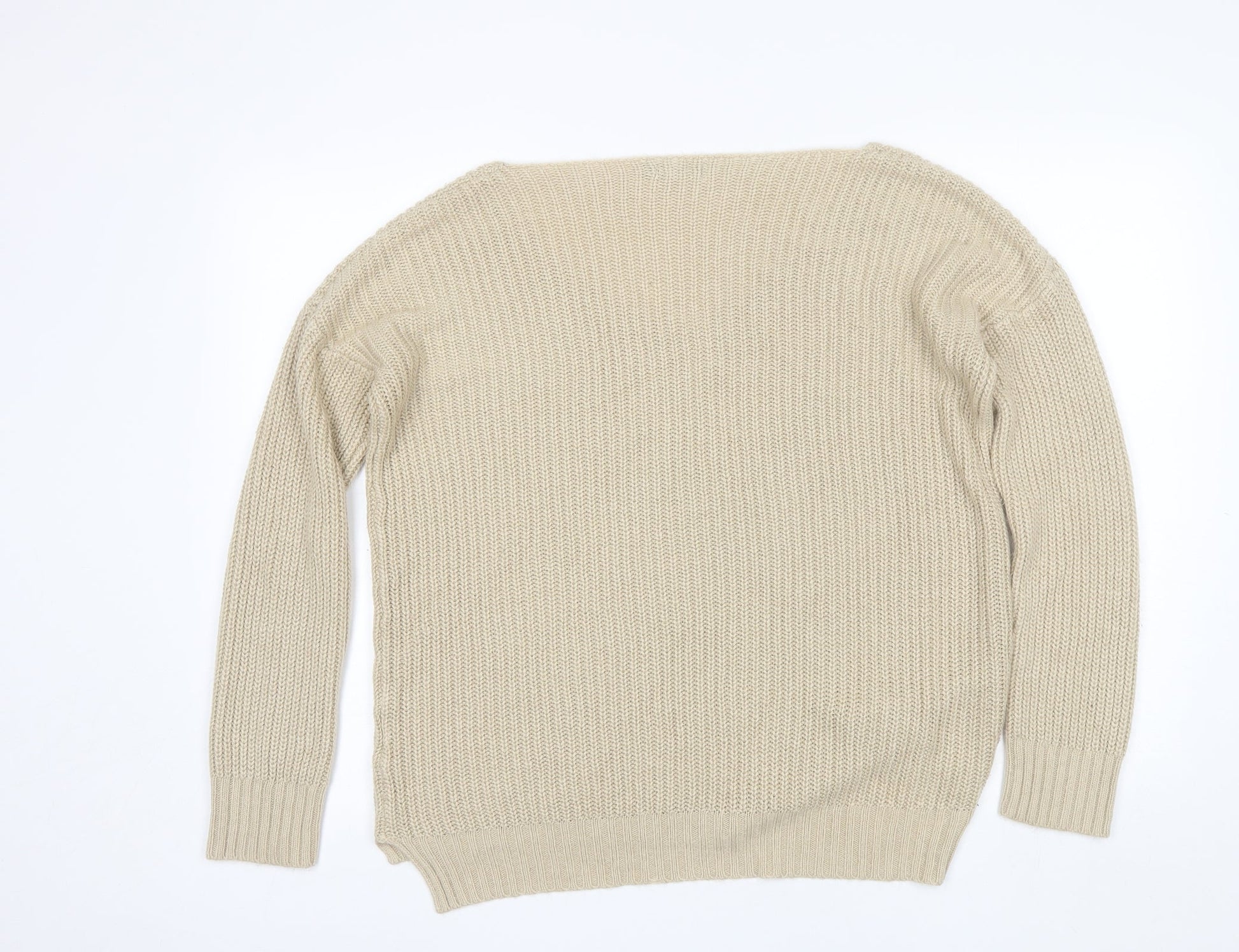 Boohoo Womens Beige Scoop Neck Acrylic Pullover Jumper Size S