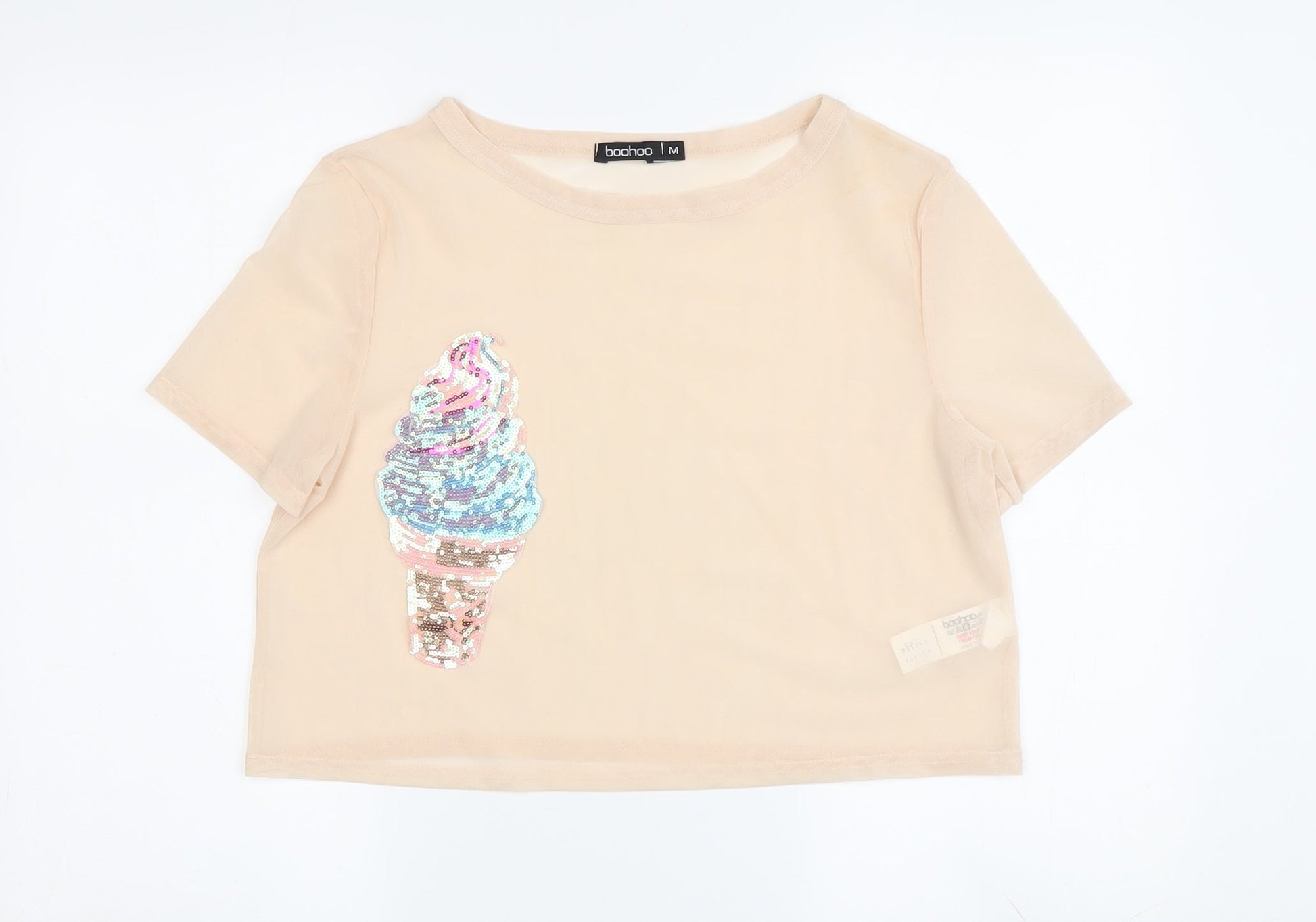 Boohoo Women's Beige Sequin T-Shirt - Size M