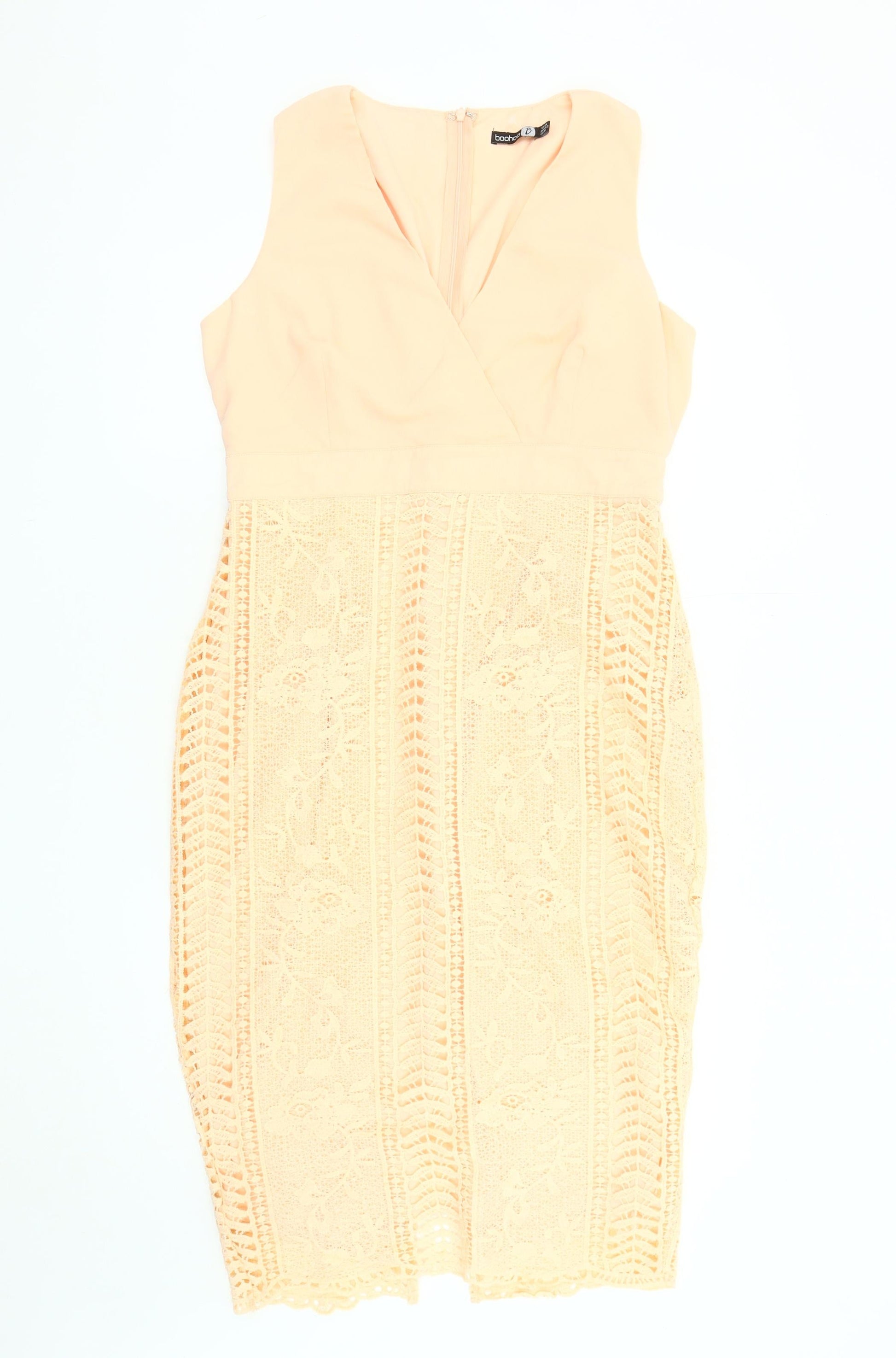 Boohoo Women's Beige Sleeveless V-Neck Dress