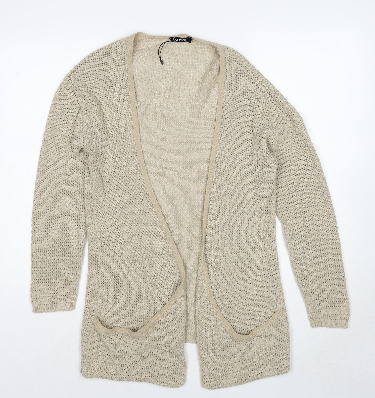 Boohoo Womens Beige V-Neck Acrylic Cardigan Jumper Size S - Size S/M