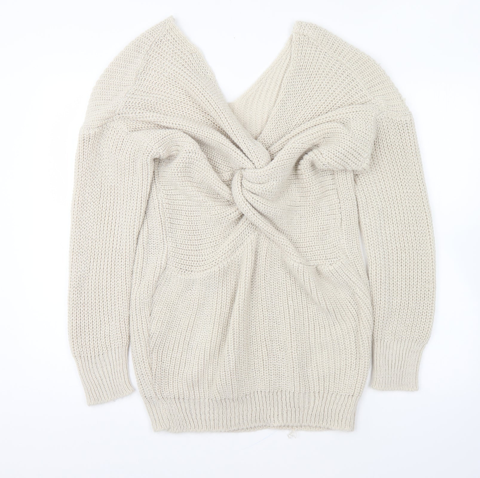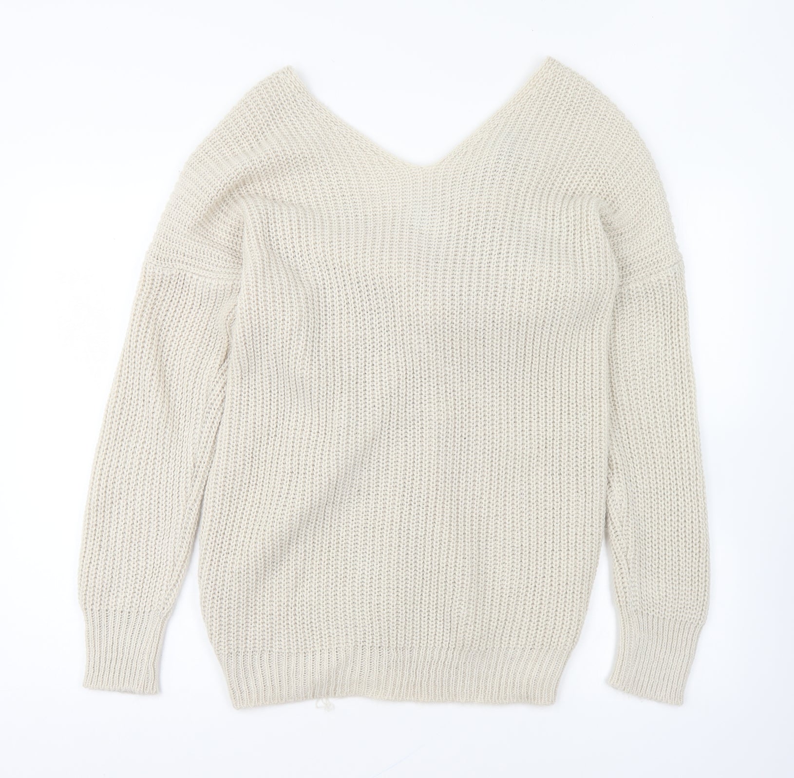 Boohoo Womens Beige V-Neck Acrylic Pullover Jumper Size S
