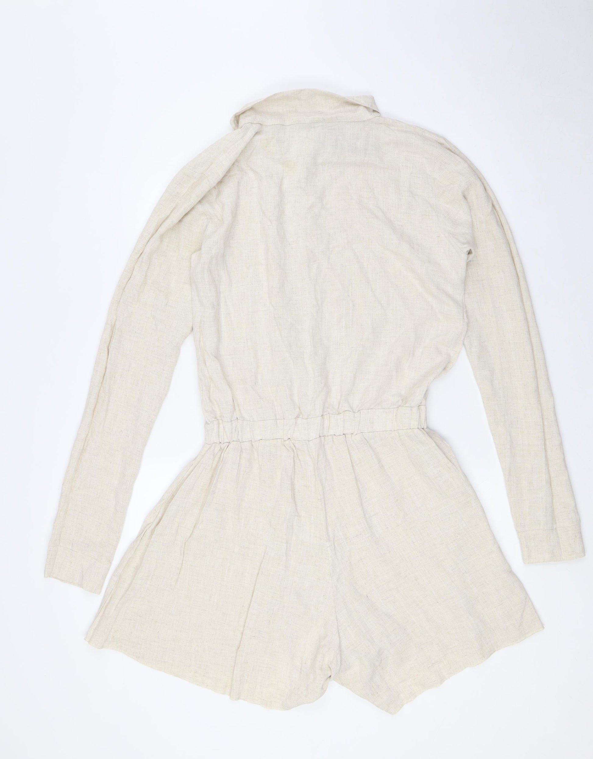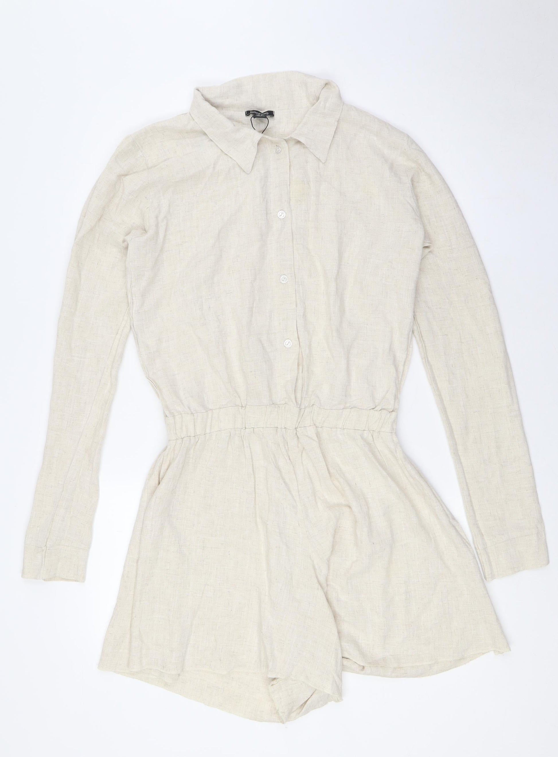 Boohoo Womens Beige Viscose Playsuit One-Piece Size 12 L3 in Button