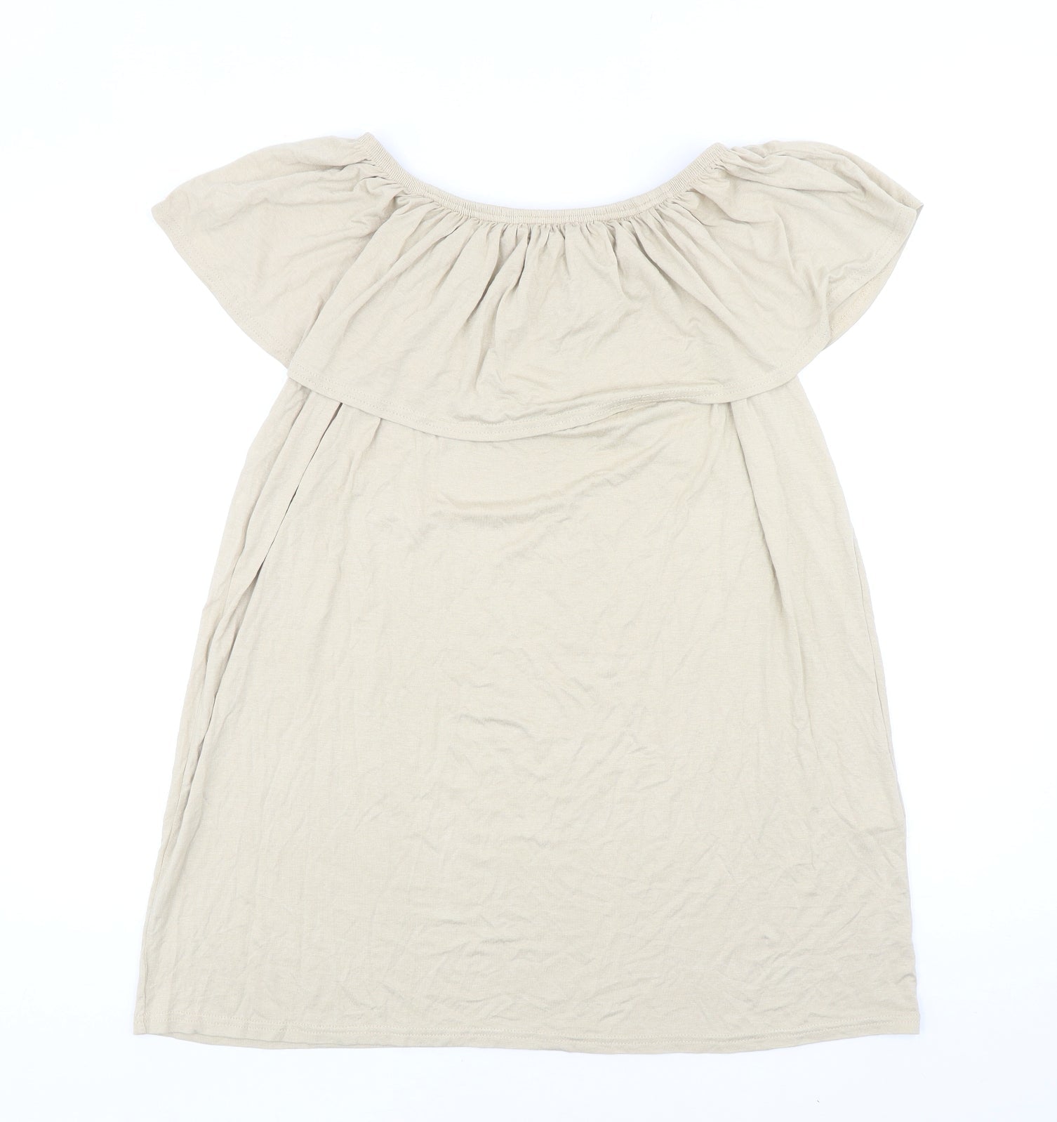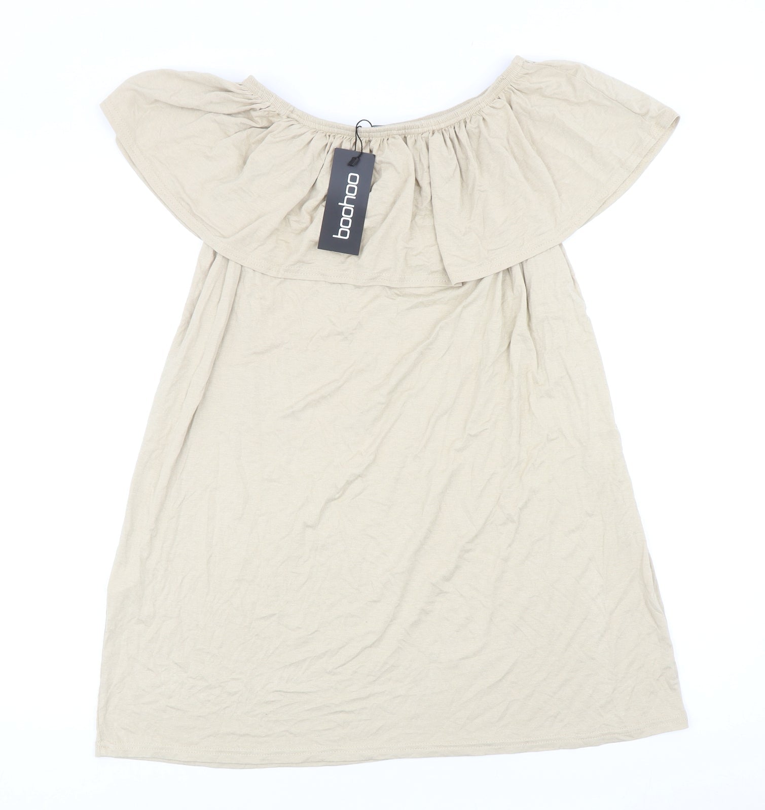 Boohoo Womens Beige Viscose Shift Size 10 Off the Shoulder Pullover