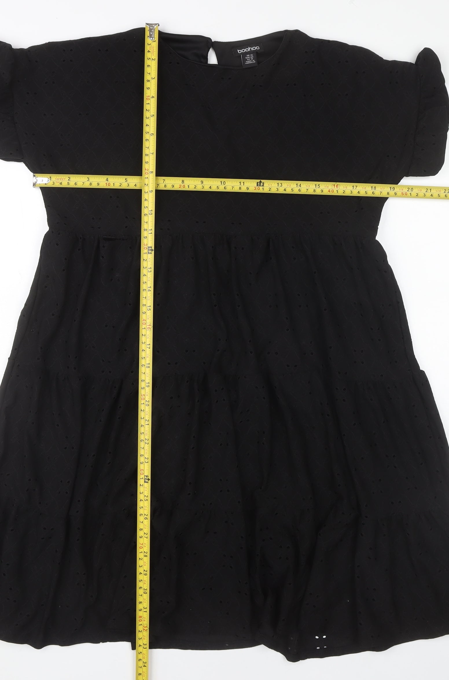 Boohoo Womens Black A-Line Puff Sleeve Knee Length Dress Size 14