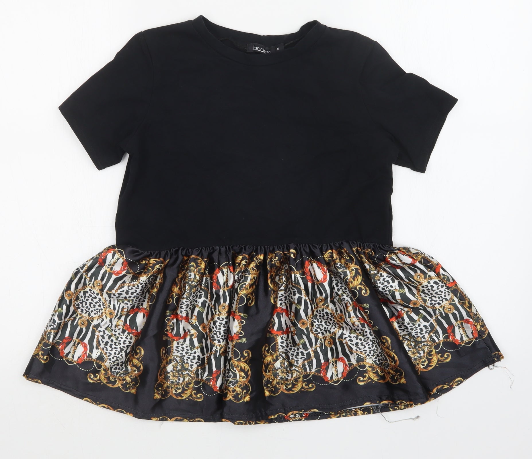 Boohoo Womens Black Animal Print Basic T-Shirt Size S