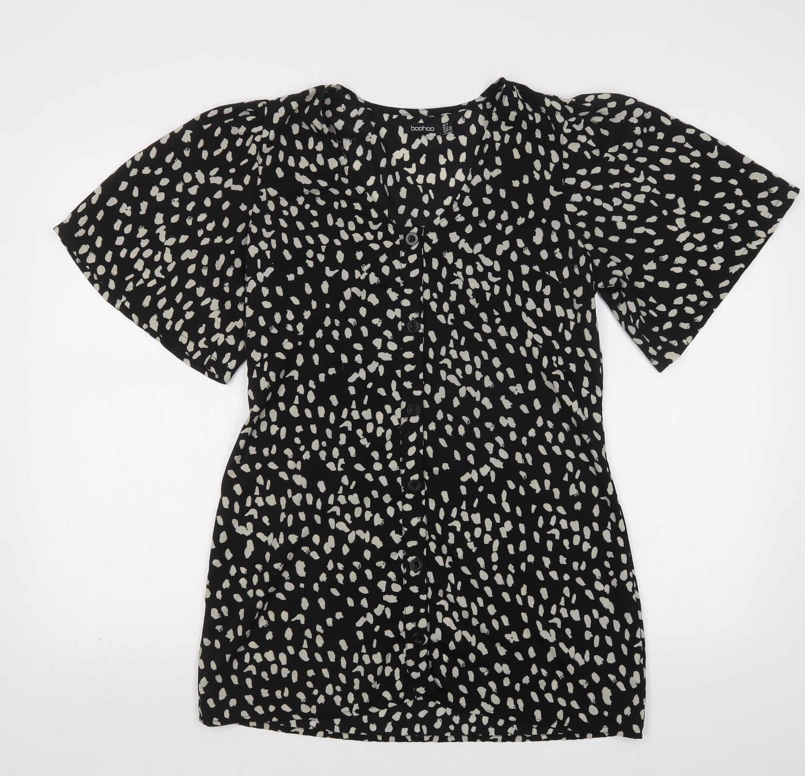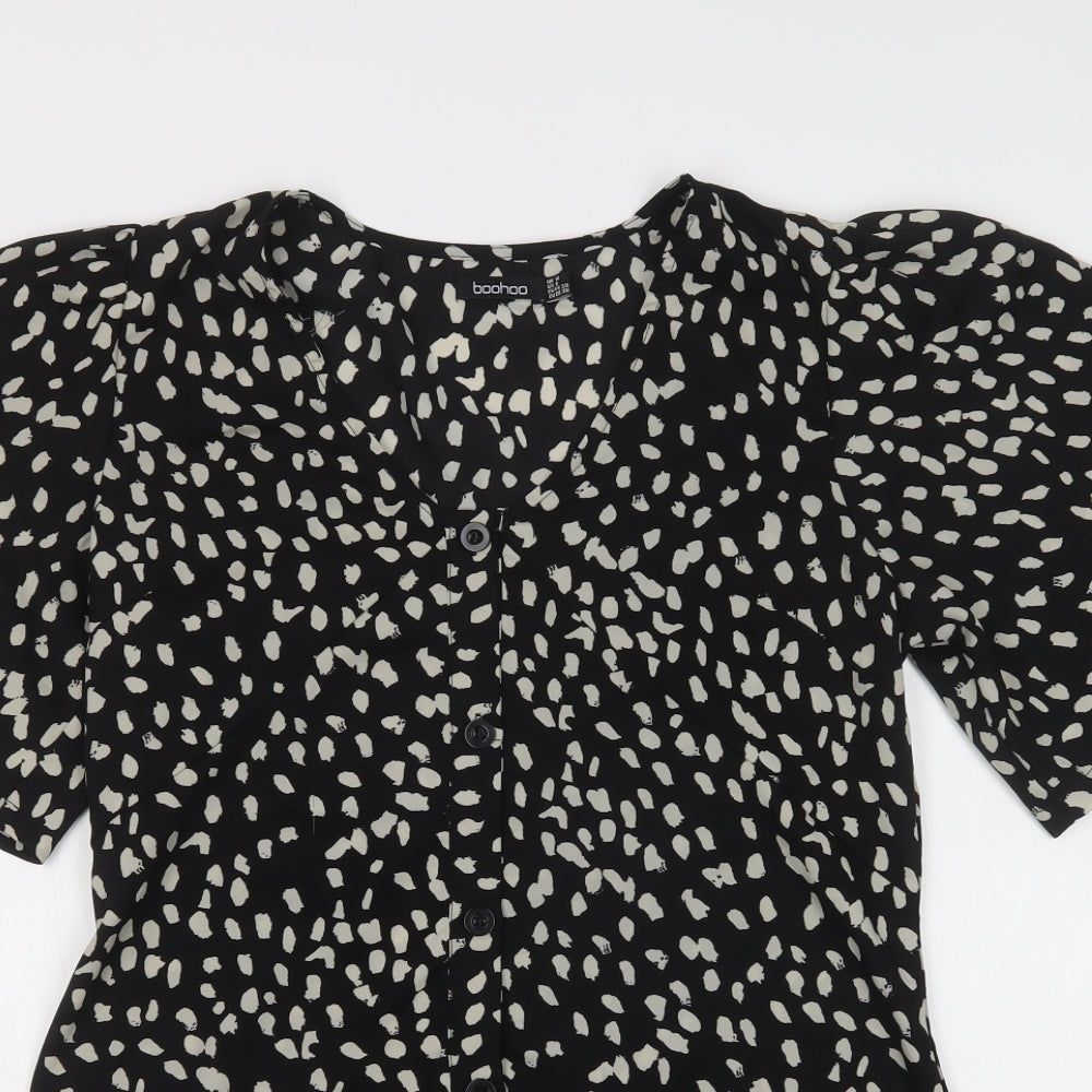 Boohoo Womens Black Animal Print Polyester Basic Blouse Size 10 Scoop Neck