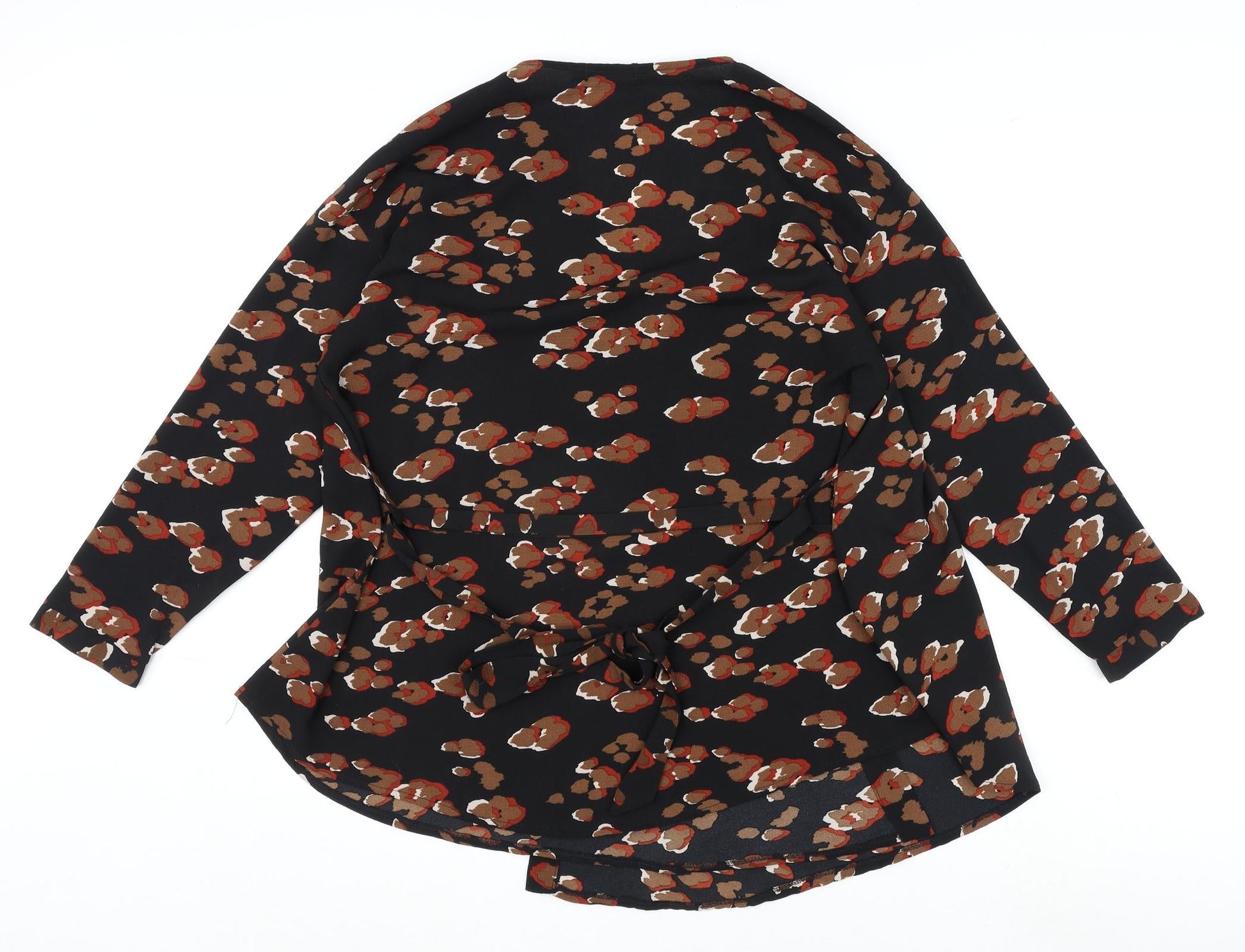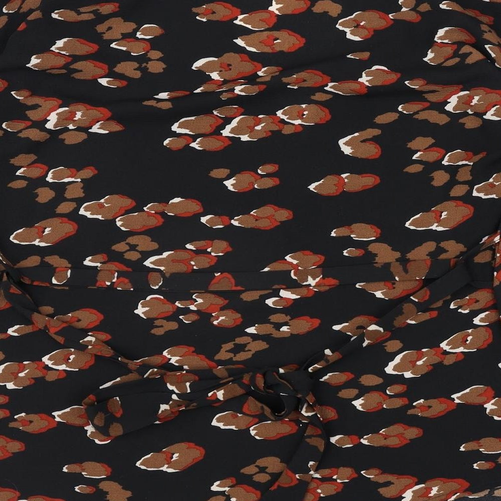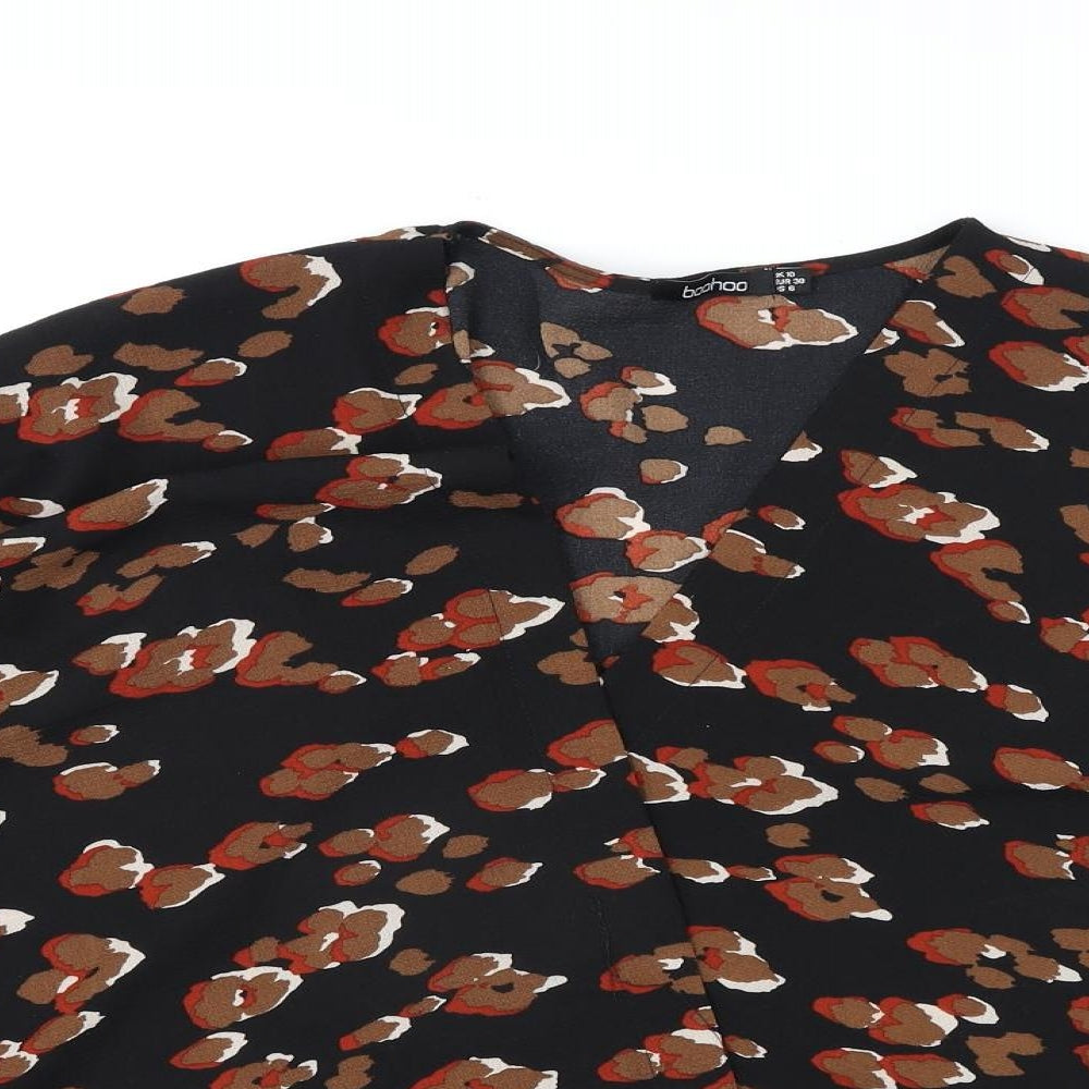 Boohoo Womens Black Animal Print Polyester Kimono Blouse Size 10 V-Neck - Leopard Print