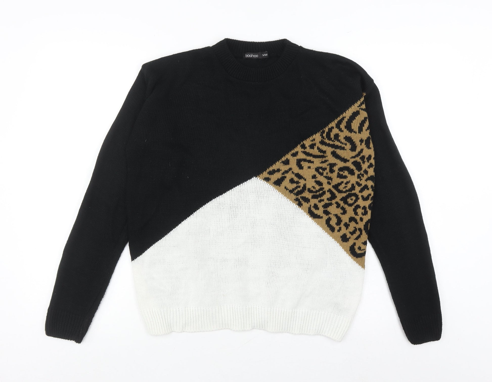 Boohoo Women's Black Animal Print Pullover Jumper S