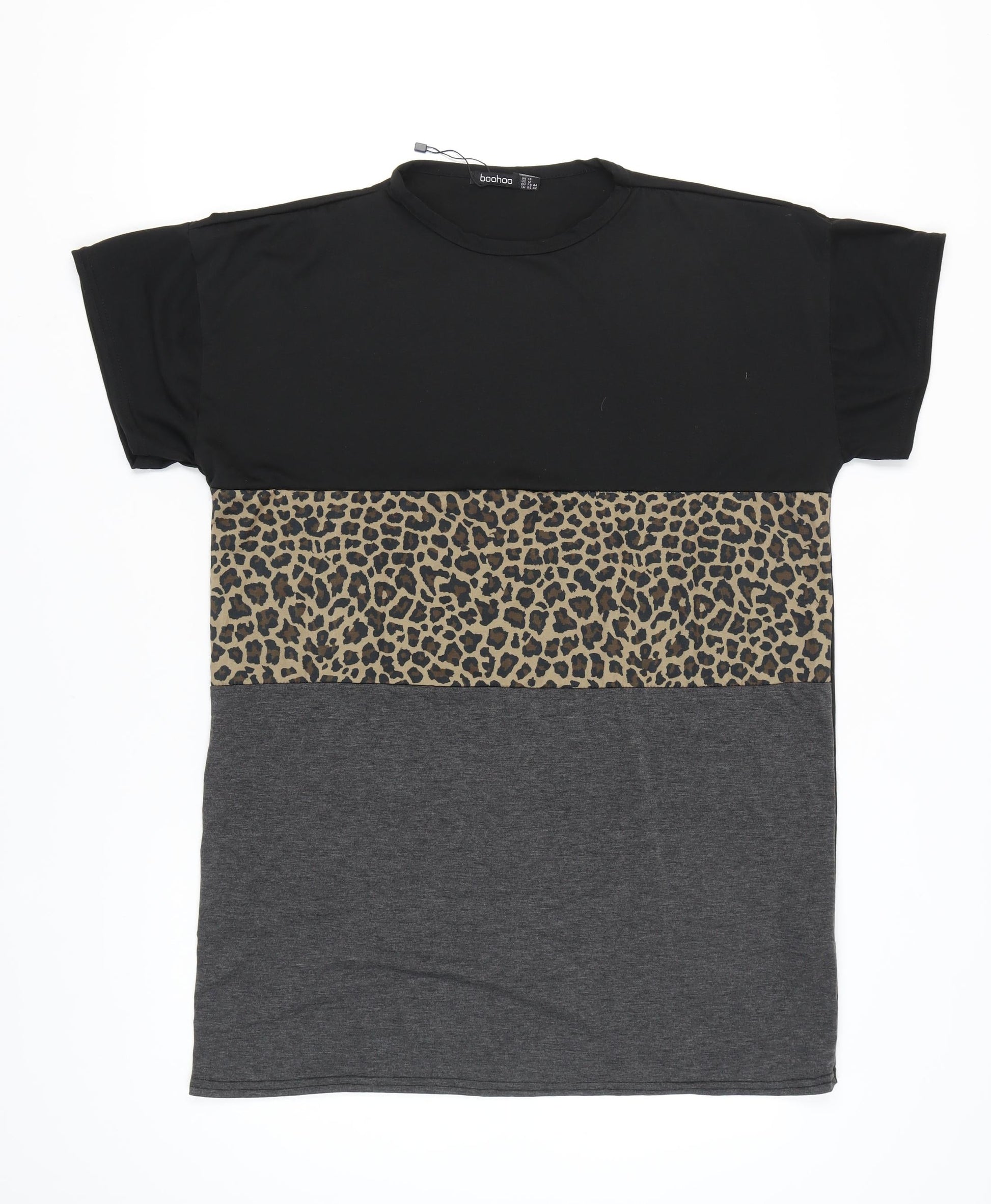 Boohoo Women's Black Beige Animal Print T-Shirt Size 16