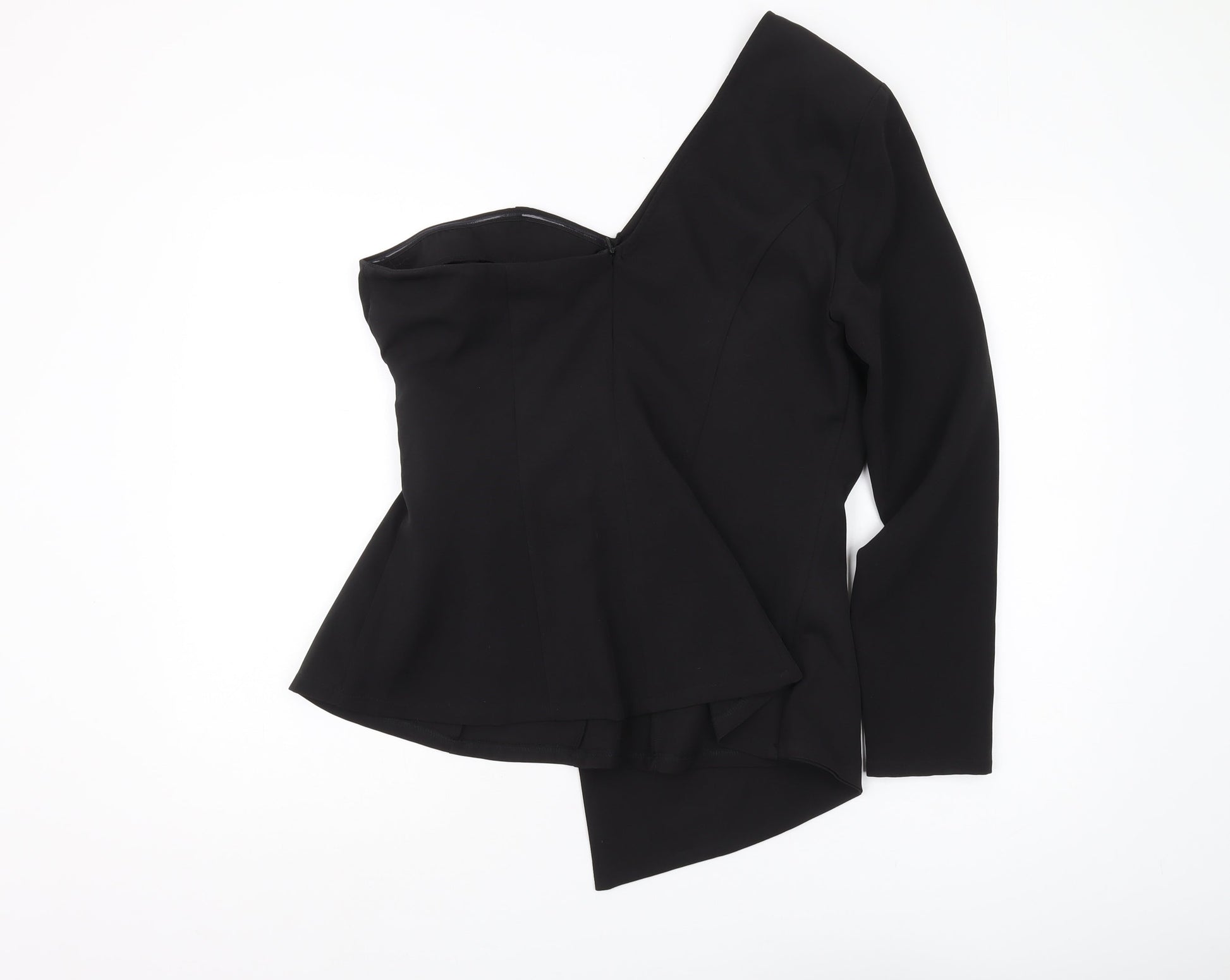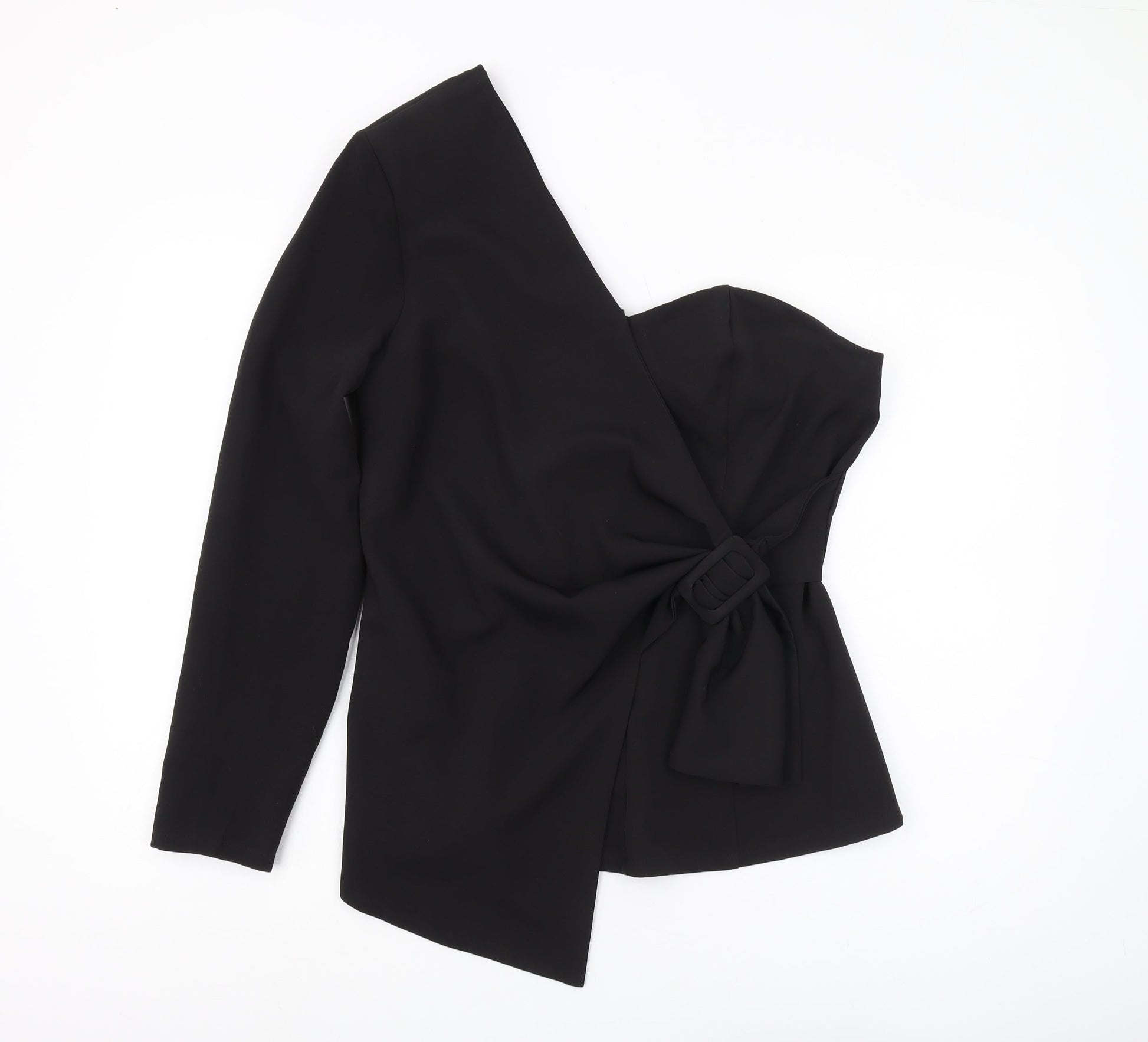 Boohoo Women's Black Blouse - Size 16, Off Shoulder Elegance